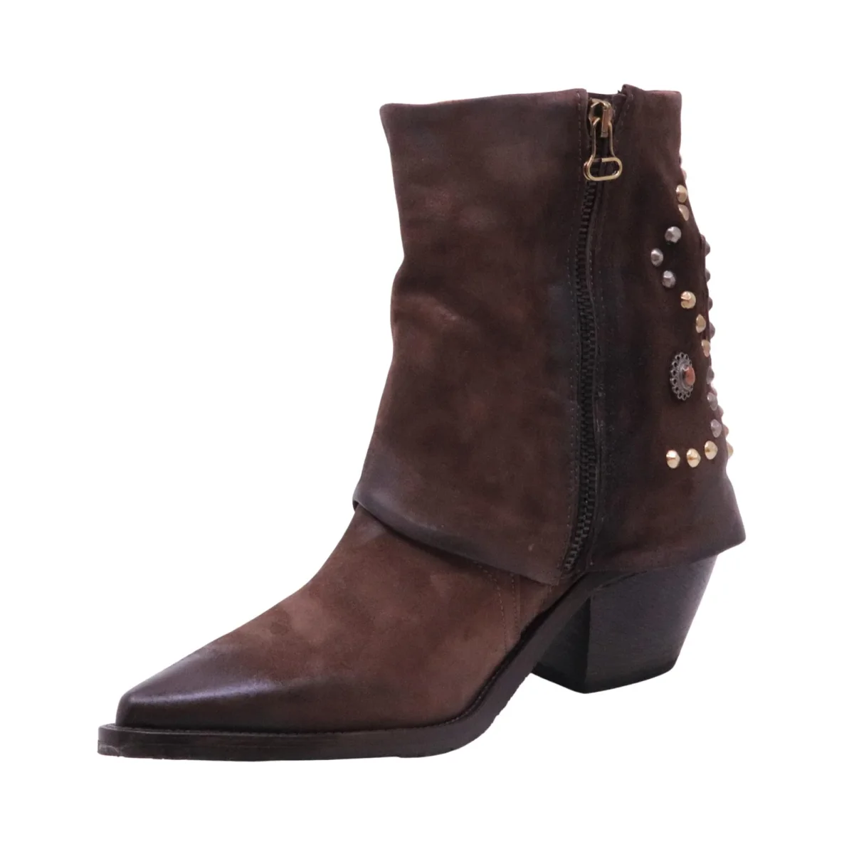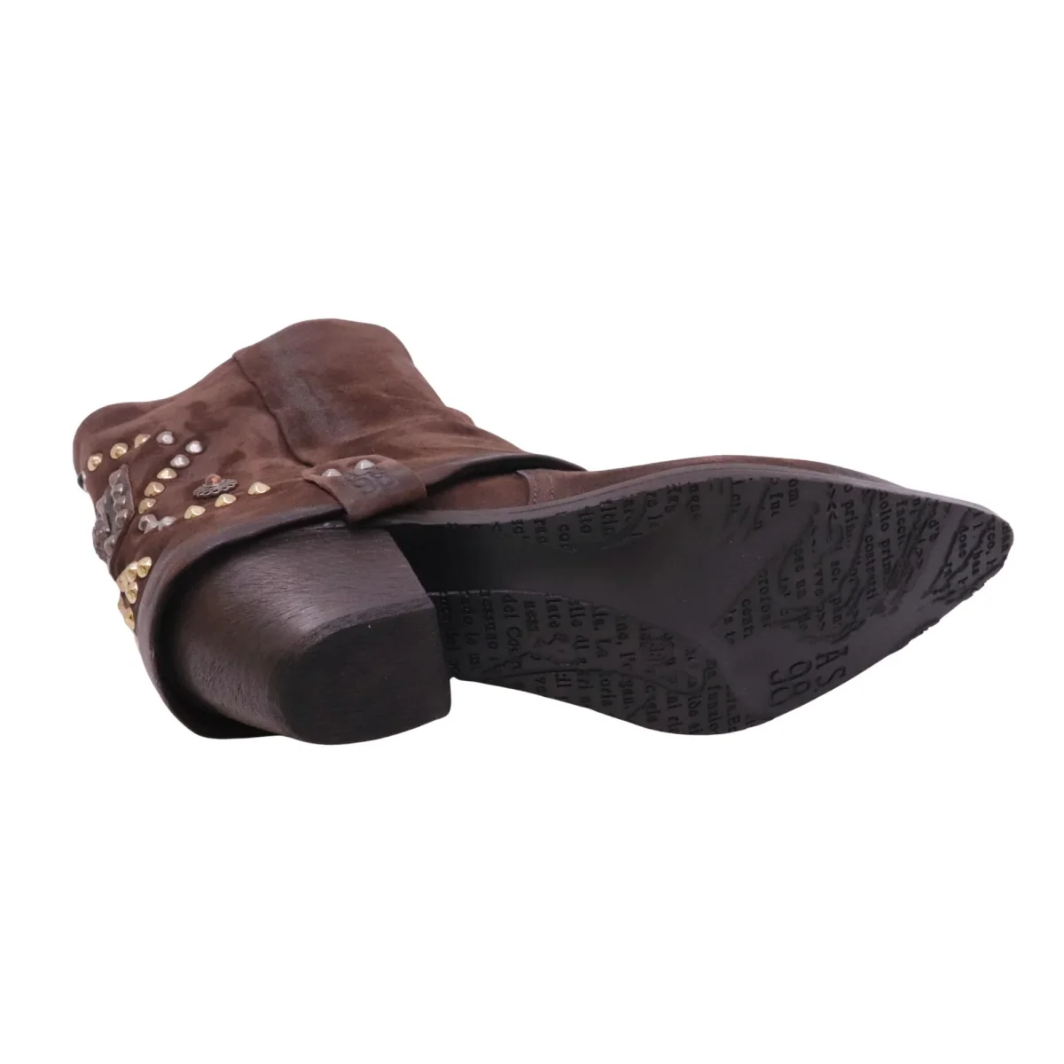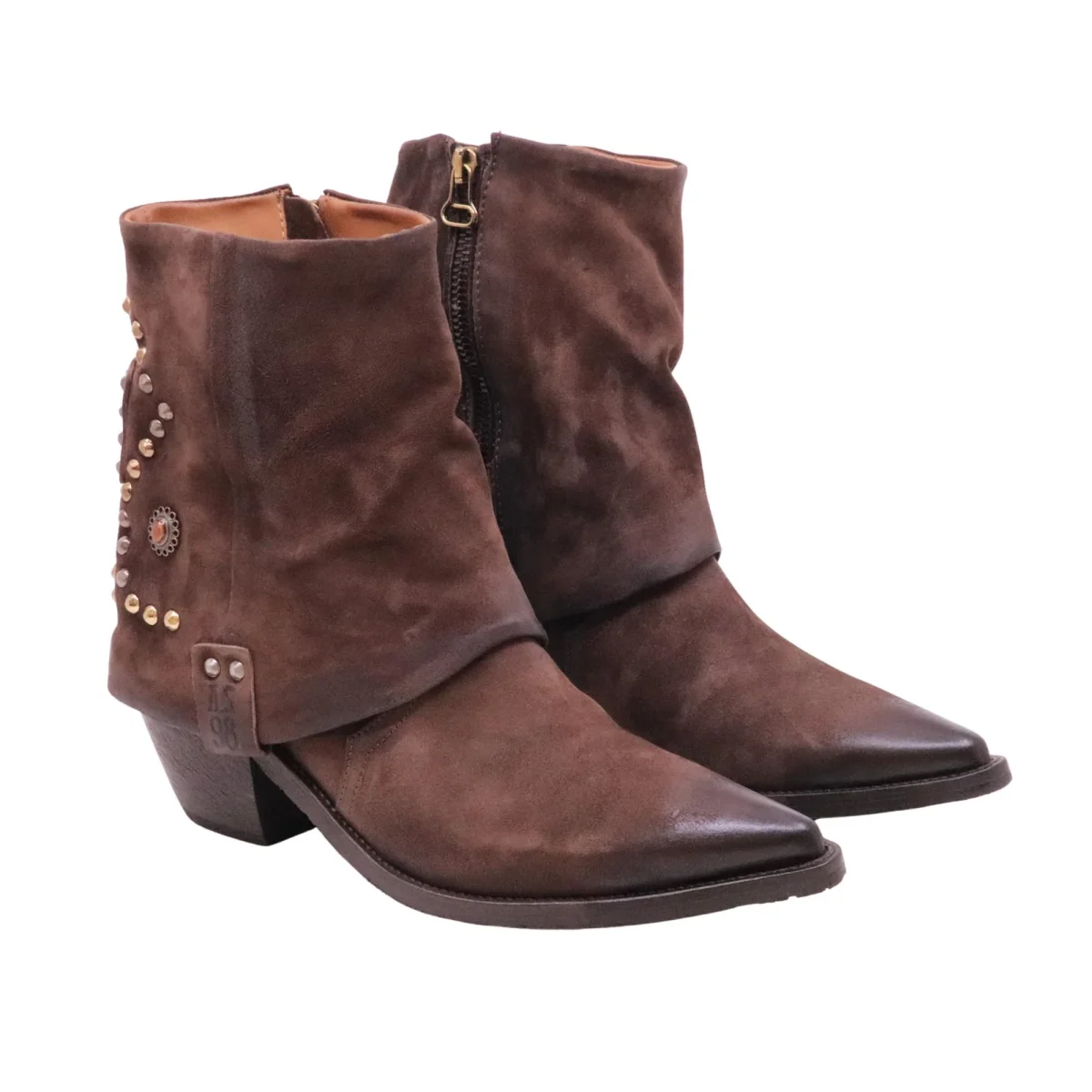 Lo stivaletto A.S.98 Caneva è pensato per la donna che ama uno stile deciso e autentico, dal carattere artigianale e grintoso. Realizzato in camoscio marrone ebano, offre una sensazione morbida al piede ma con una struttura solida, accompagnata da calzata regolare che garantisce comfort e stabilità durante l’uso quotidiano. Le borchiette decorative sul retro richiamano l’estetica western tipica del brand, rendendo il modello ideale per la mezza stagione e l’autunno-inverno. Perfetto da abbinare a jeans, pantaloni slim o abiti casual per look decisi e contemporanei. Un modello selezionato da Bruno Calzature per chi cerca calzature di carattere, ben fatte e riconoscibili, con cambio taglia semplice e assistenza reale.