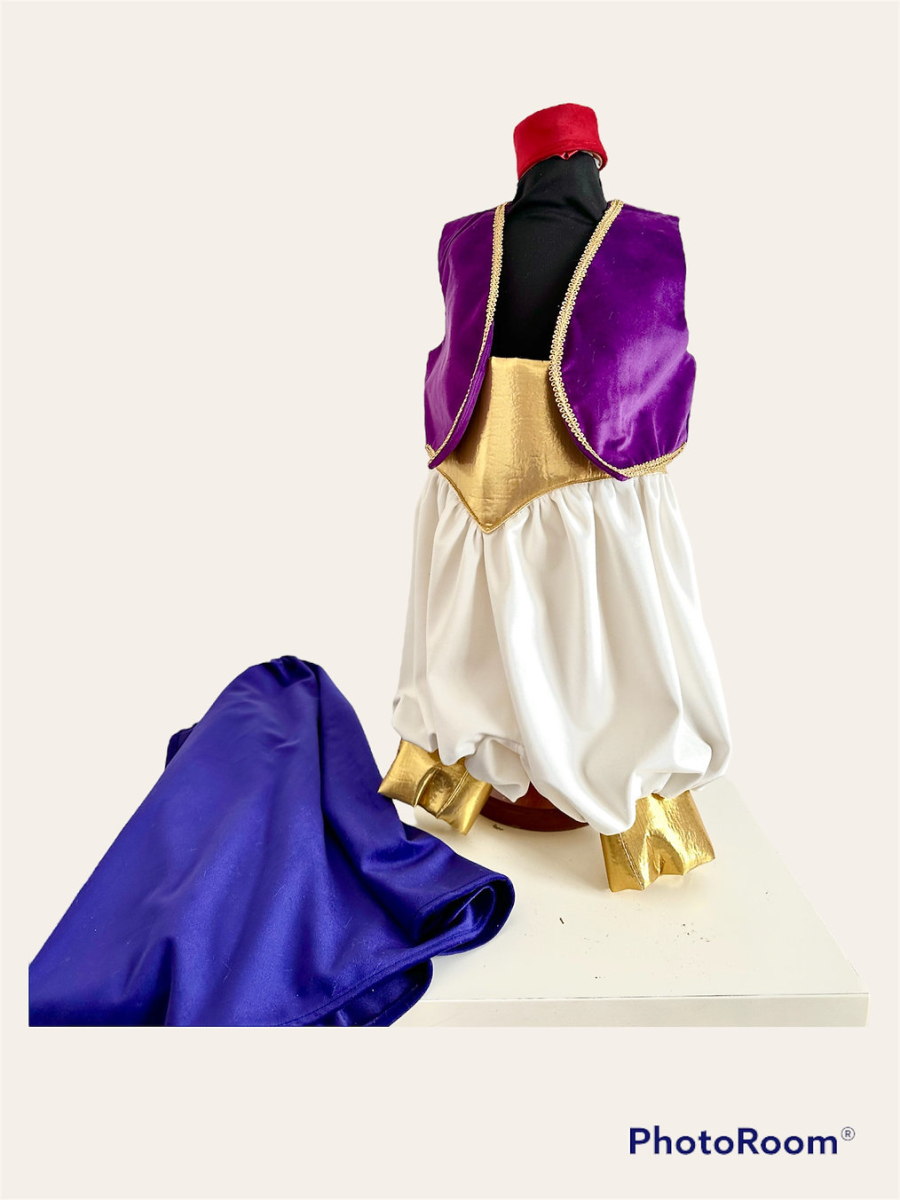 Aladdin, il principino che tutti vorrebbero essere. Un abito realizzato a mano , con tantissimi dettagli che lo rendono unico, viene ideato con tessuto in velluto.