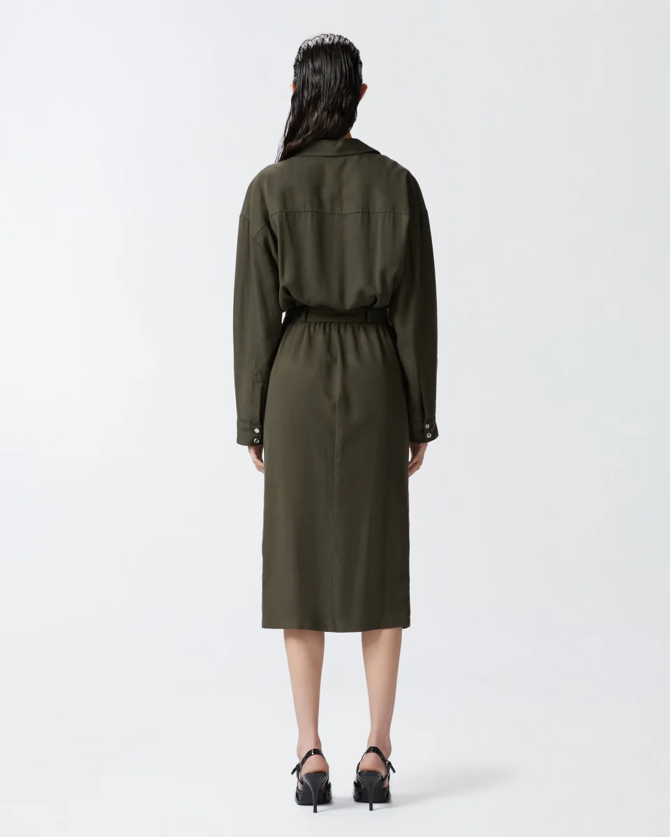 Abito Pinko dalla linea chemisier in tessuto twill lyocell morbido e confortevole.