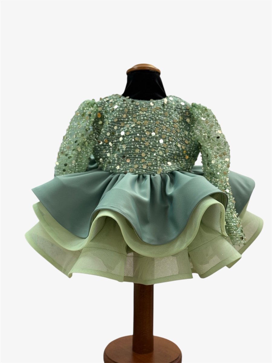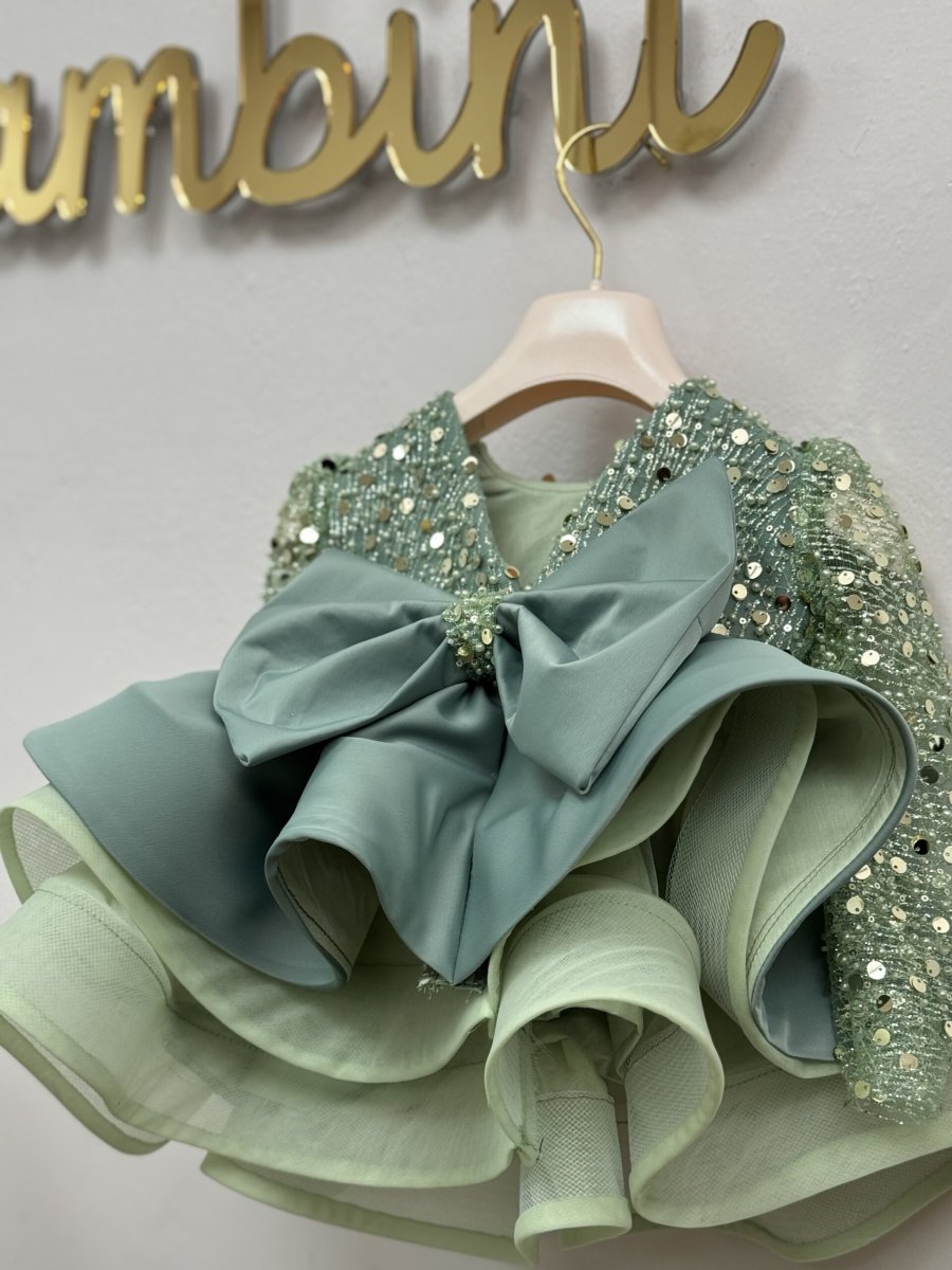 Immagina un abito che incarna l’eleganza e la raffinatezza in ogni dettaglio. Questo abito magnifico è realizzato in un tessuto morbido e fluido, che scivola delicatamente sul corpo, avvolgendolo in una danza di bellezza e leggerezza. Il corpetto, finemente decorato con perline e ricami, cattura la luce ad ogni movimento, creando un gioco di riflessi che aggiunge un tocco di glamour senza eccessi.