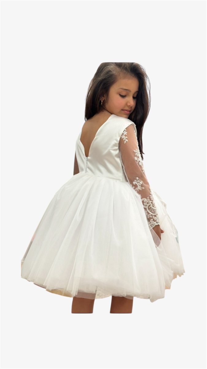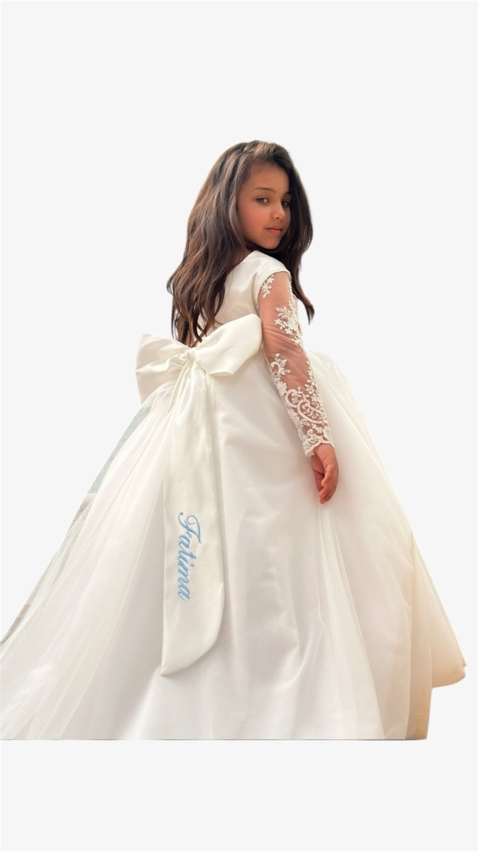 Abito cerimoniale bambina in bianco seta con fiocco polvere personalizzabile