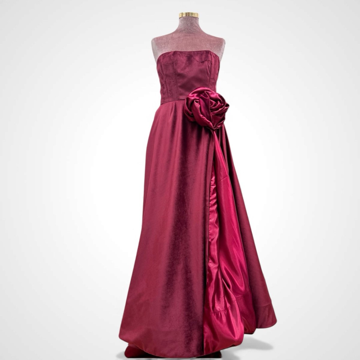 Abito donna in velluto bordeaux, elegante e sensuale, impreziosito da un raffinato contrasto in seta bordeaux che ne esalta le linee e aggiunge luminosità. La morbidezza del velluto si unisce alla leggerezza della seta per creare un capo sofisticato, ideale per eventi, serate speciali e occasioni in cui distinguersi con stile.