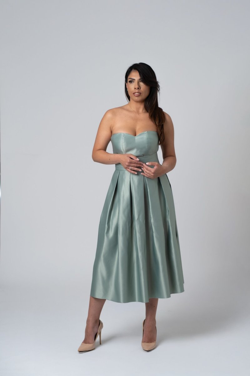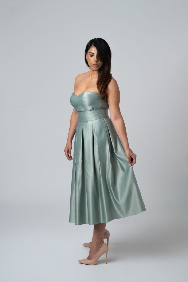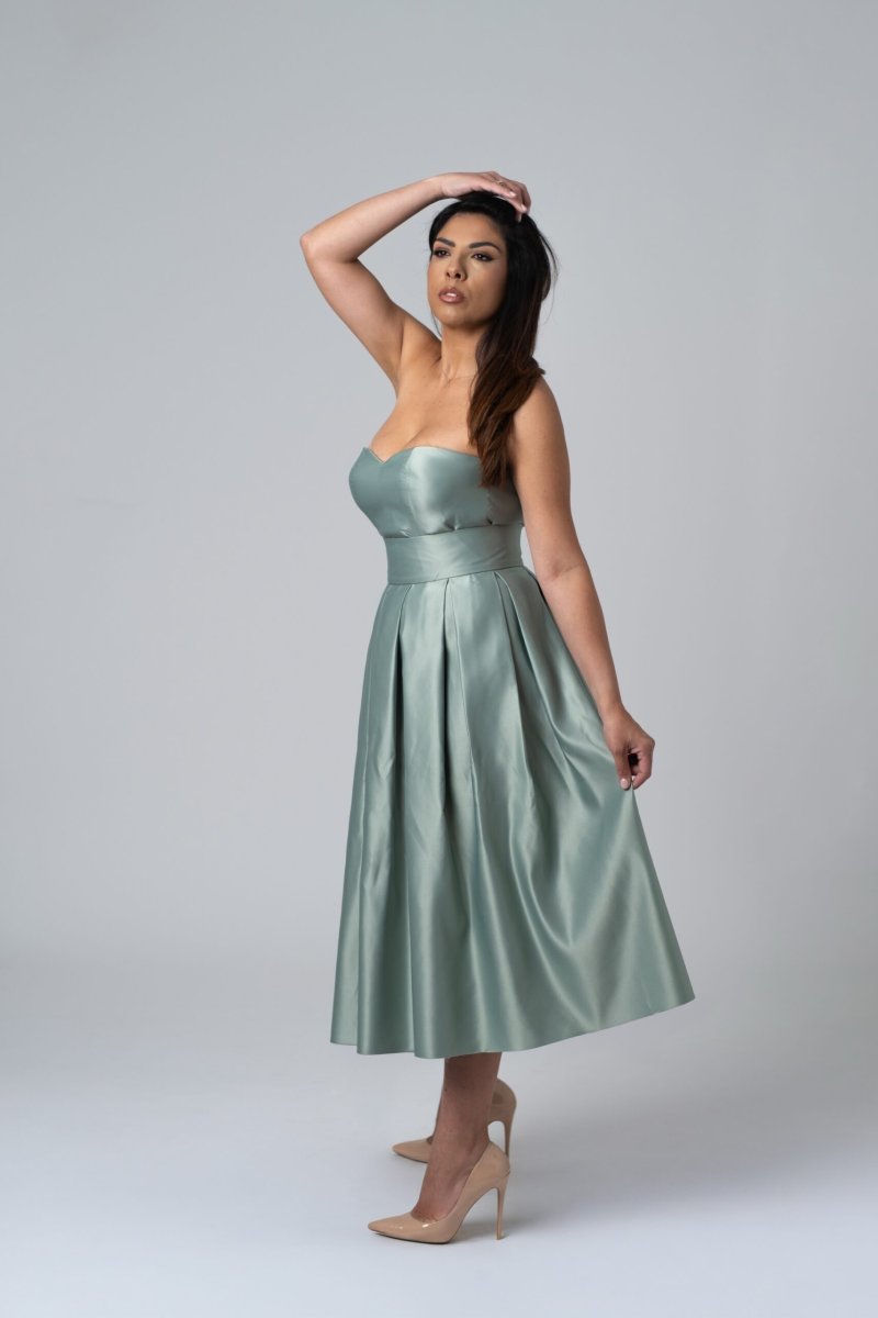 Abito due pezzi con corpetto a stringhe e gonna con piegoni