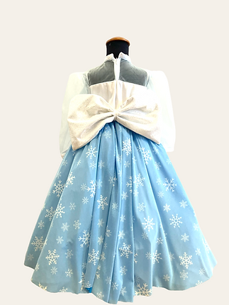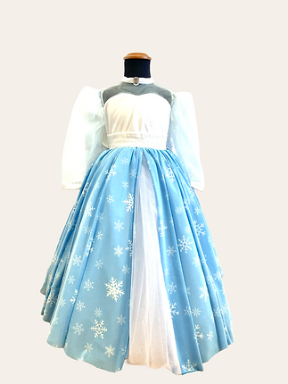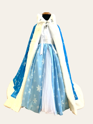 Abito Frozen, rappresenta la principessa più amata negli ultimi anni. Si presta molto elegante, con un struttura voluminosa, con tessuto impreziosito da stampe di “ghiaccio”, con al centro tulle bianco. A dare maggior bellezza all’abito è il mantello adornato da un bordo di pelliccia e sulla parte posteriore un bellissimo fiocco bianco.