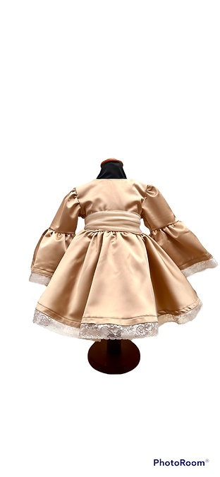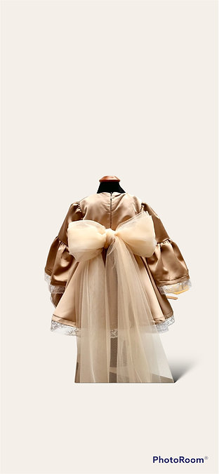 Abito Giulia in cady di seta, con dettagli in pizzo e cintura con fiocco in seta fatta a mano