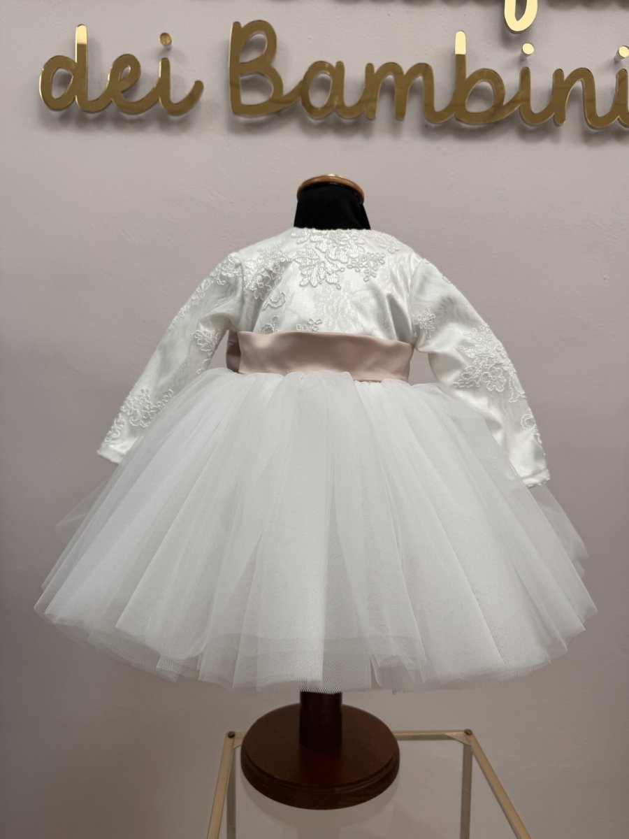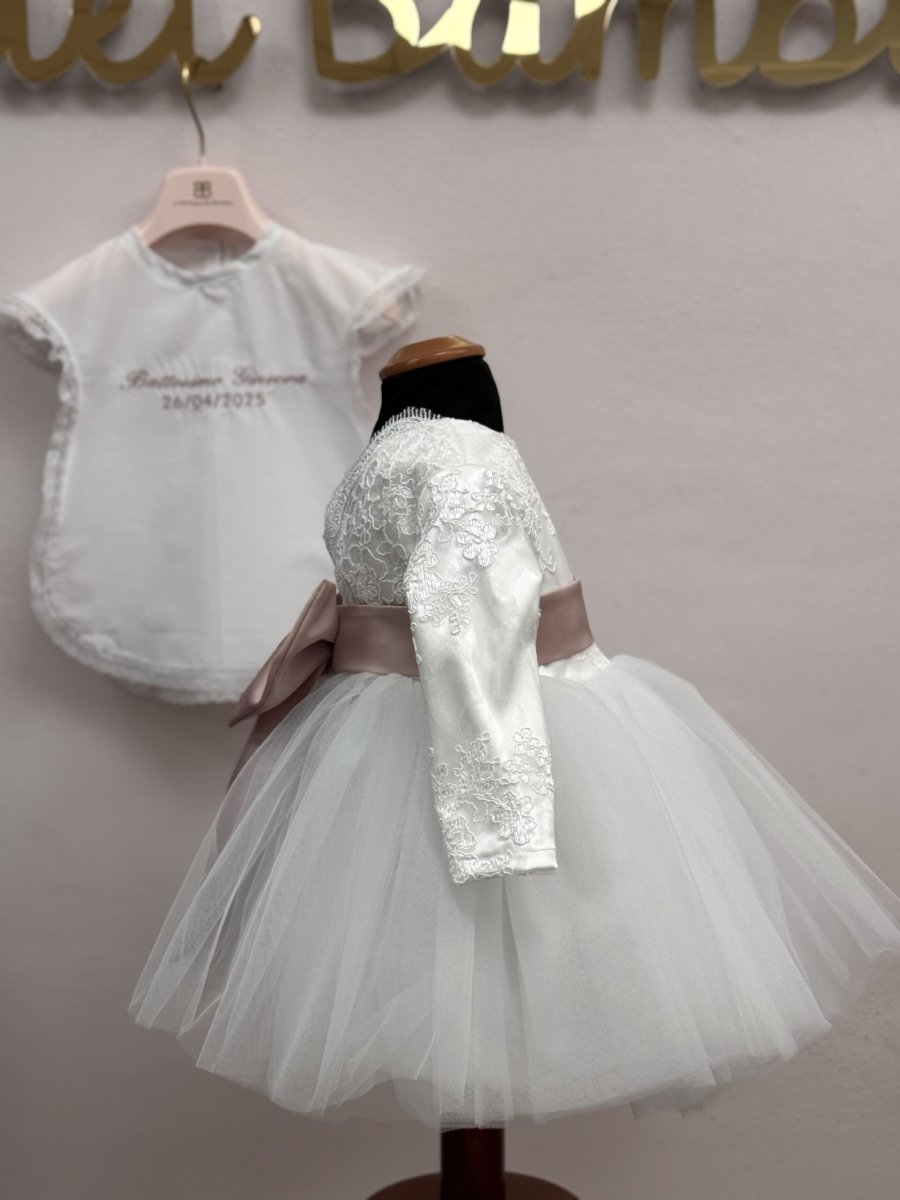 Scopri l’abito che farà battere il cuore! ✨ Con un corpino in pizzo finemente lavorato che esalta ogni dettaglio di eleganza, e una gonna in tulle leggera che si muove come una nuvola, questo abito è un vero sogno che diventa realtà. Perfetto per ogni occasione speciale,