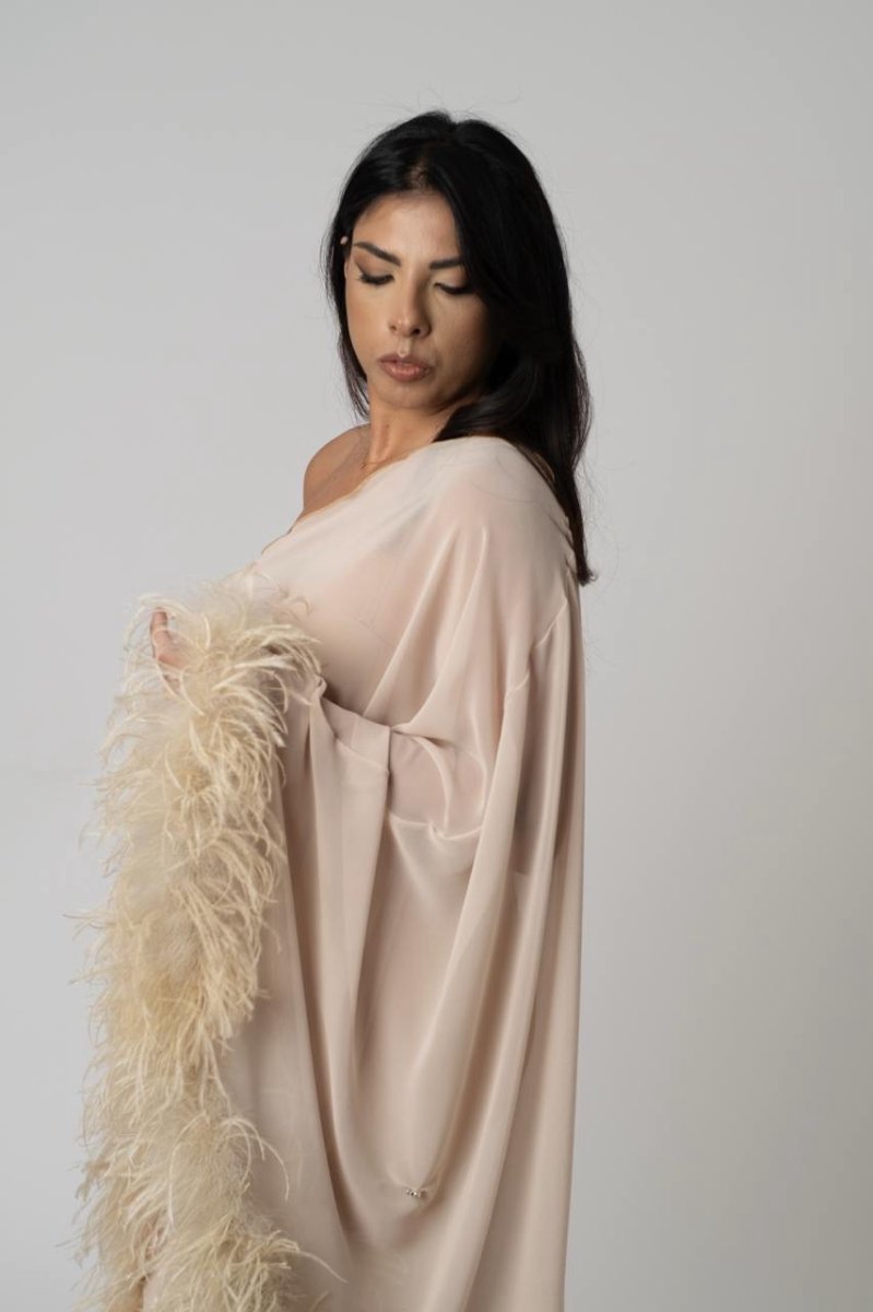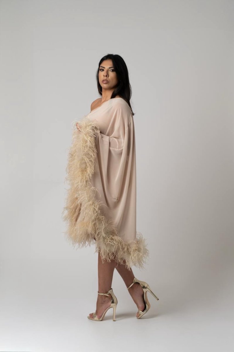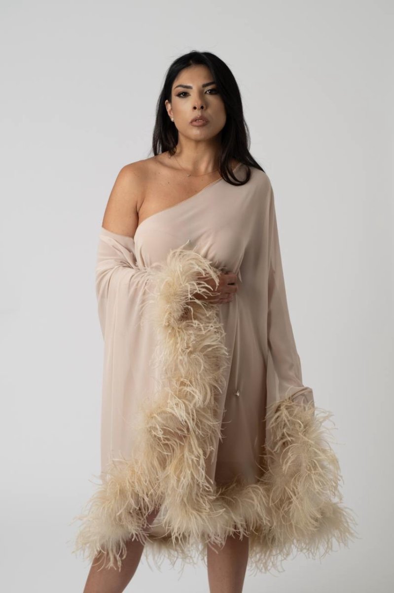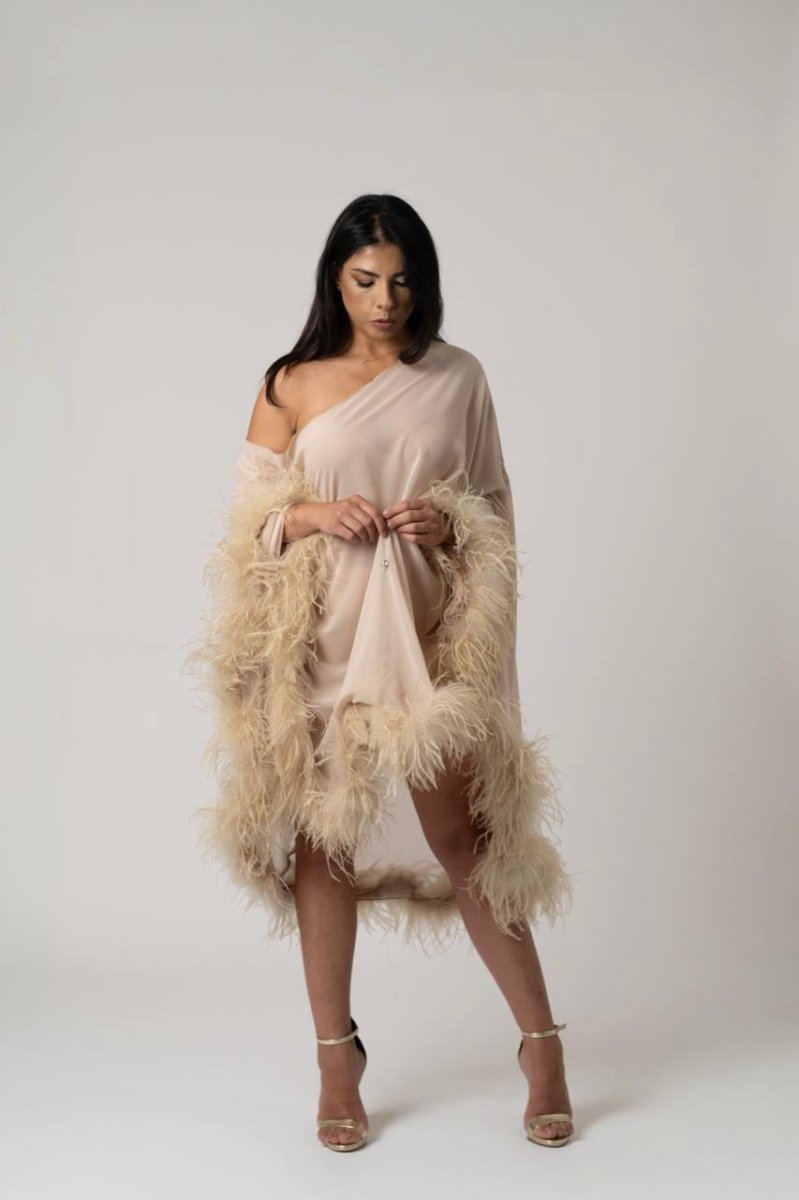 Abito in chiffon con piume boa