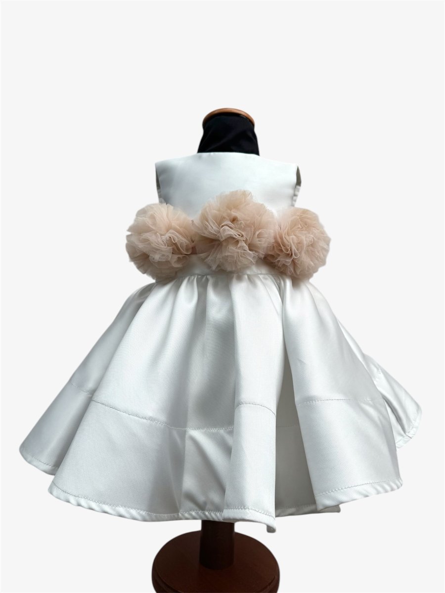Abito in mikado con cintura di fiori in tulle