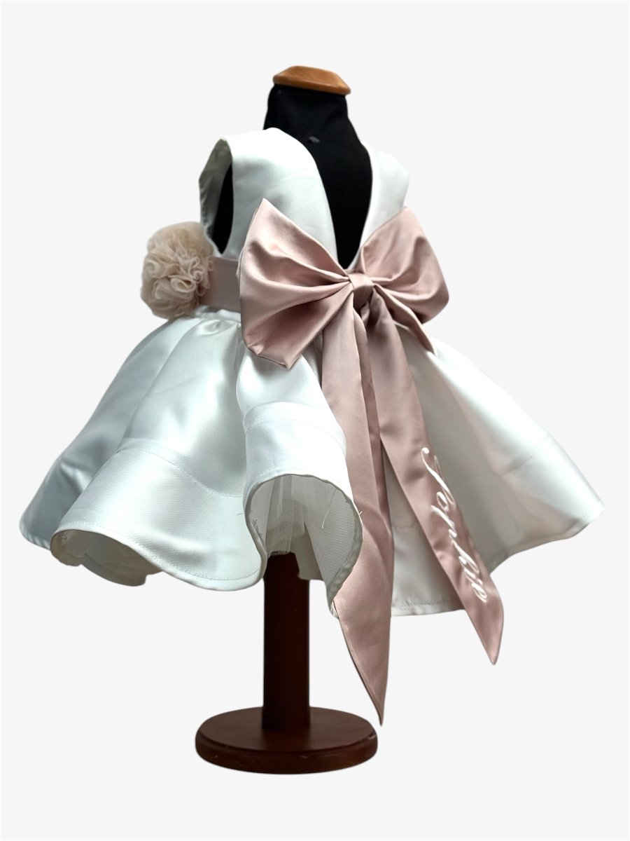 Un sogno di eleganza prende forma in questo abito in mikado, dove la struttura raffinata del tessuto incontra la delicatezza romantica dei dettagli. La cintura, impreziosita da fiori in tulle lavorati a mano, accarezza il punto vita esaltando la silhouette con grazia. Sul retro, un fiocco personalizzato aggiunge un tocco di poesia e unicità, trasformando ogni passo in una dichiarazione di stile senza tempo. Perfetto per chi desidera distinguersi con classe e femminilità. Visualizza questo post su Instagram Un post condiviso da Roberta Leone (@laboutiquedeibambini)