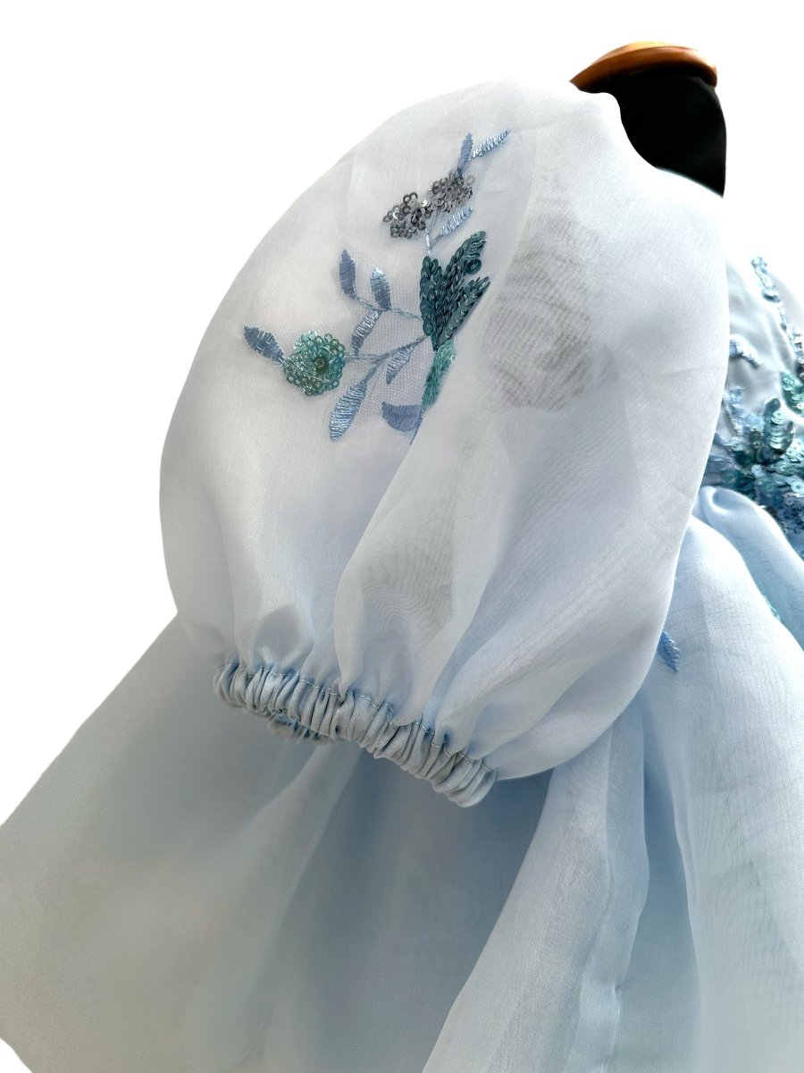 Abito meraviglioso realizzato in organza con pizzo applicato interamente a mano