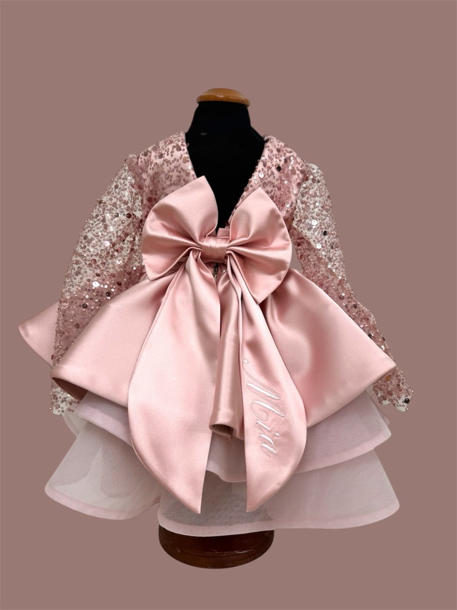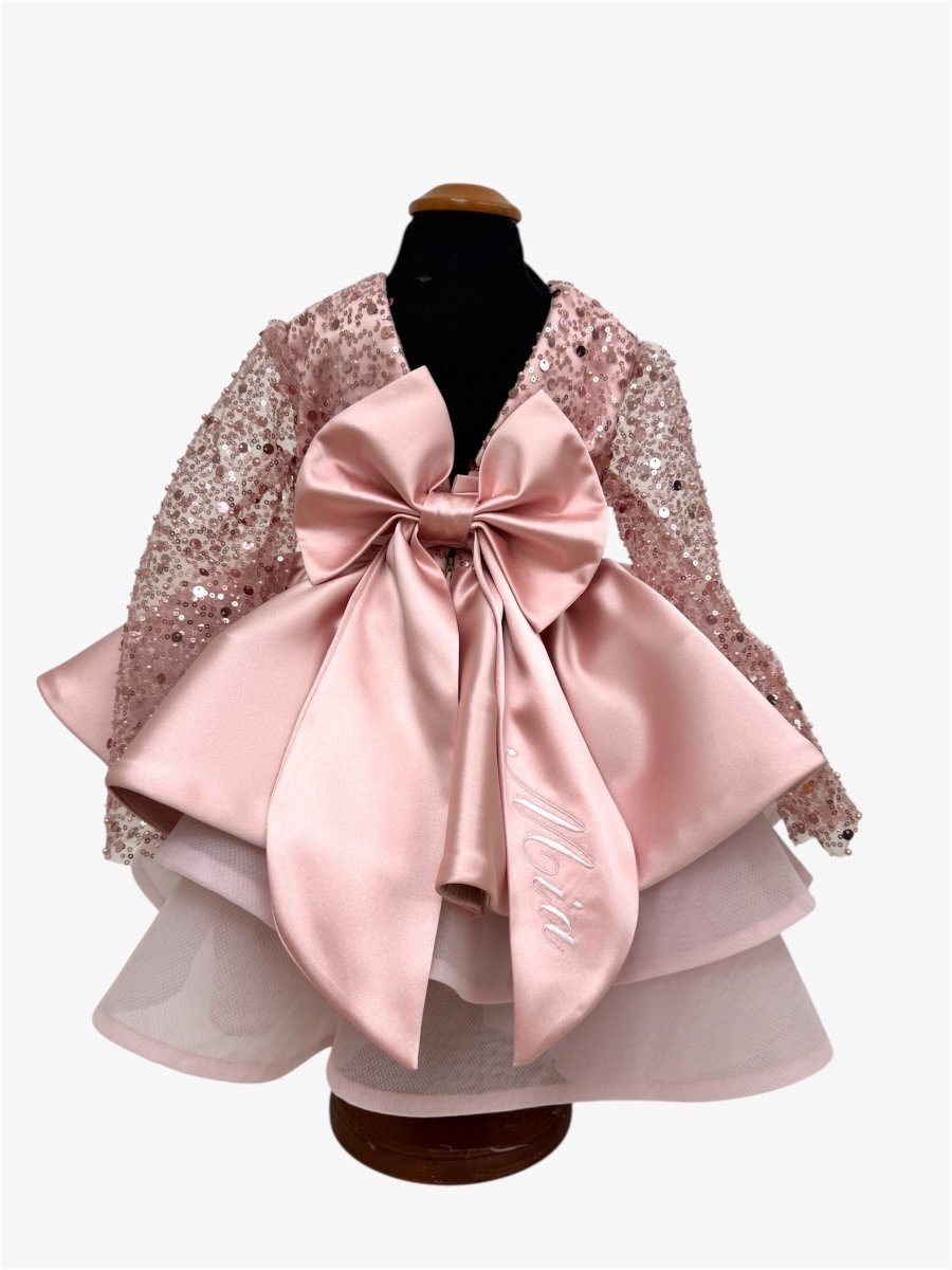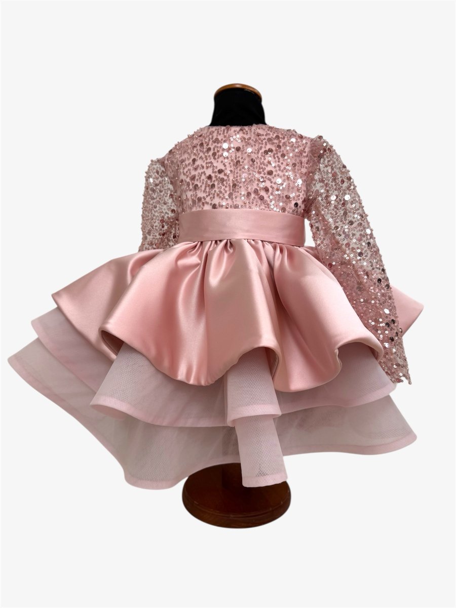 Abito in perline rosa antico con gonna in seta