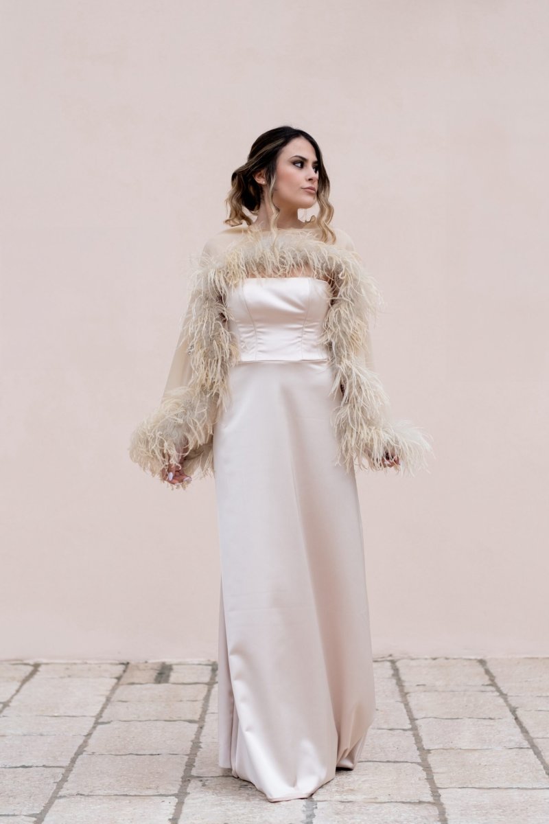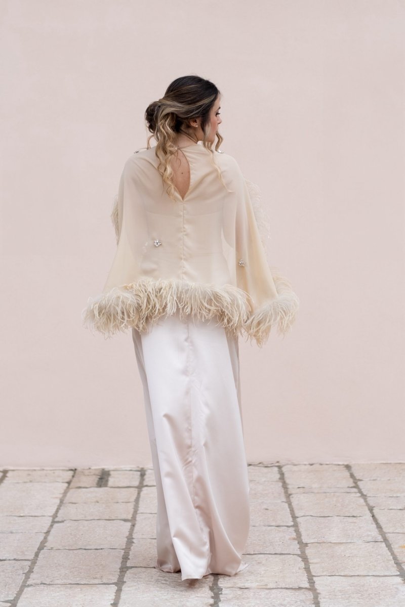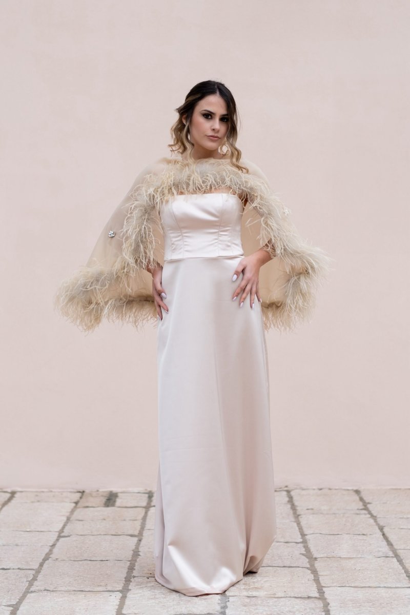 Abito in seta con cappa in chiffon