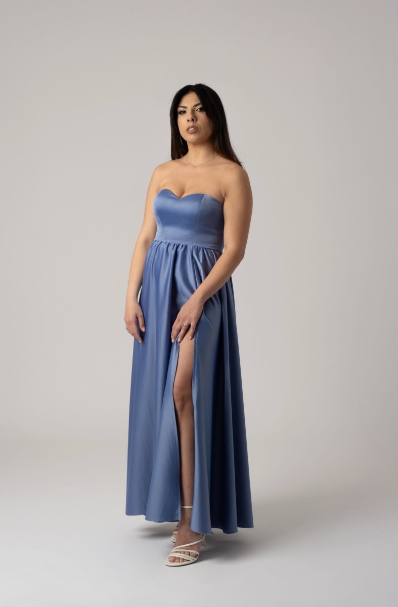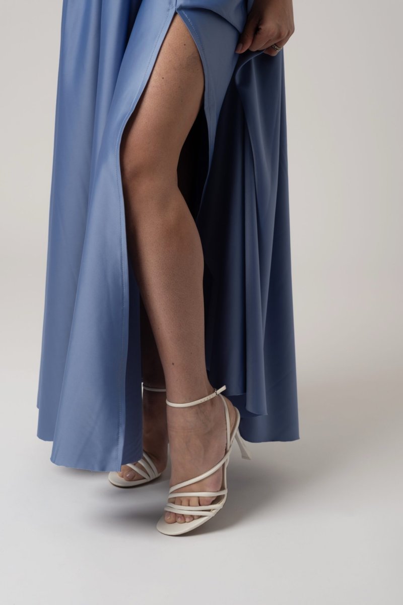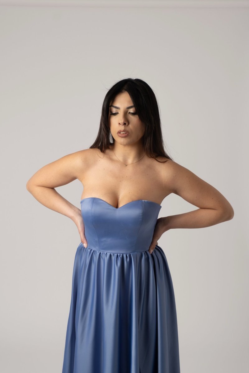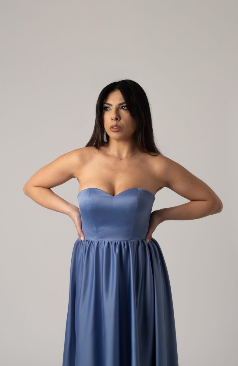 Delicato come un soffio, questo abito in seta color polvere avvolge il corpo con una morbidezza eterea. Lo scollo a cuore, romantico e femminile, esalta con grazia il décolleté, mentre la linea essenziale valorizza la silhouette con sobria eleganza. Perfetto per cerimonie, ricevimenti o eventi serali, è un capo che unisce raffinatezza e sensualità con estrema naturalezza.