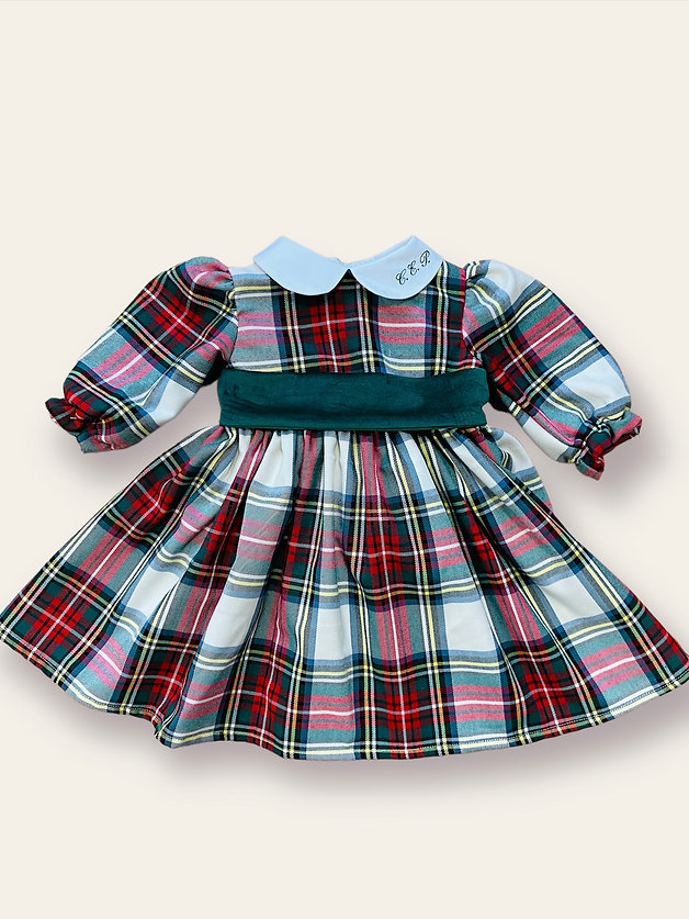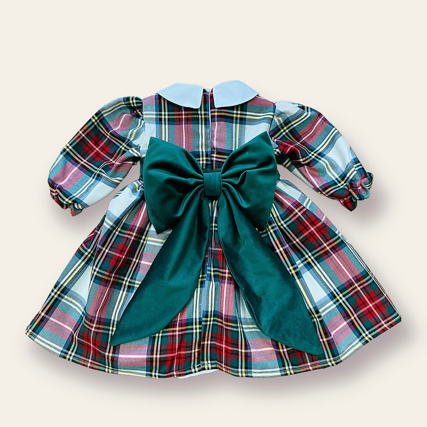 Abito in tartan con cintura rimovibile e fiocco in velluto