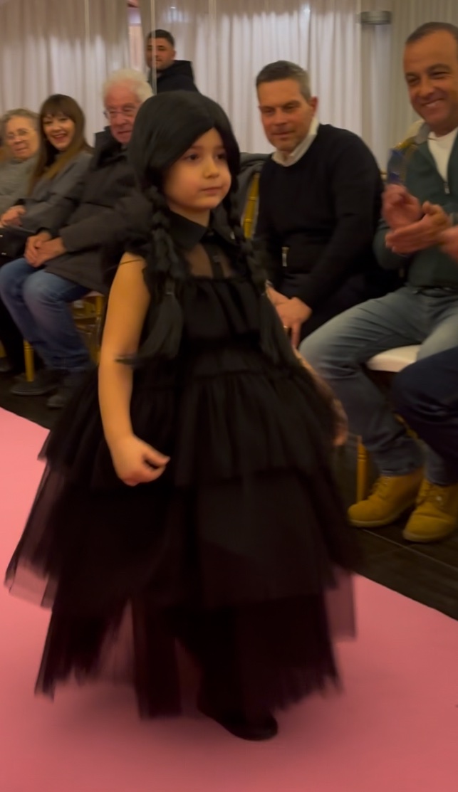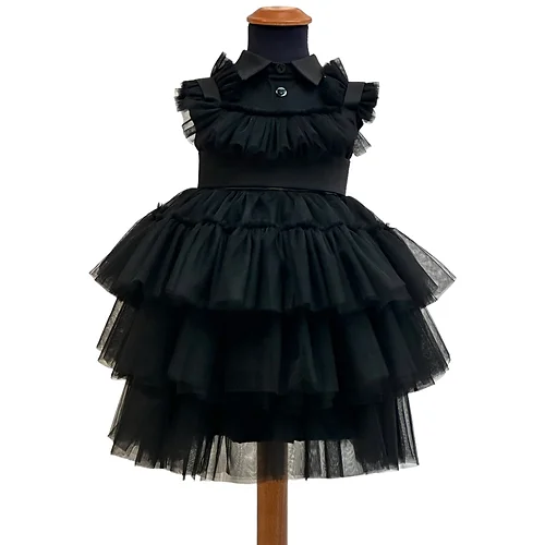 Abito Mercoledì da ballo, il personaggio più amato dalle bambine, realizzato con ampie balze in tulle