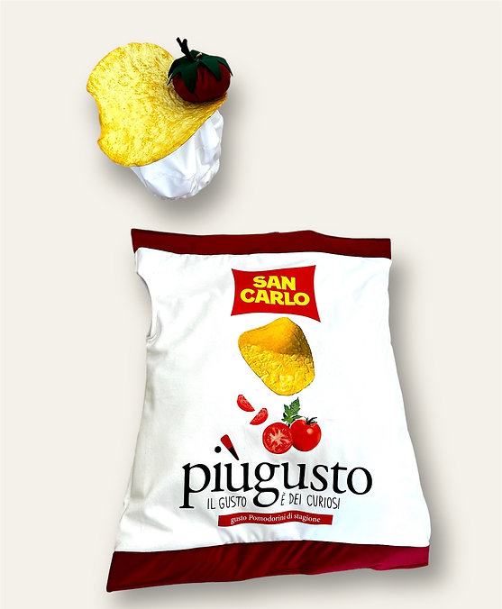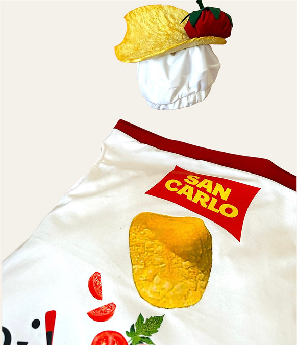 Il tuoa piccoloa ama le patatine? Allora sei nel posto giusto! Un abito a forma di patatine San Carlo, colmo di dettagli che ne assicurano l’esclusività, soprattutto attraverso il basco con la patatina.