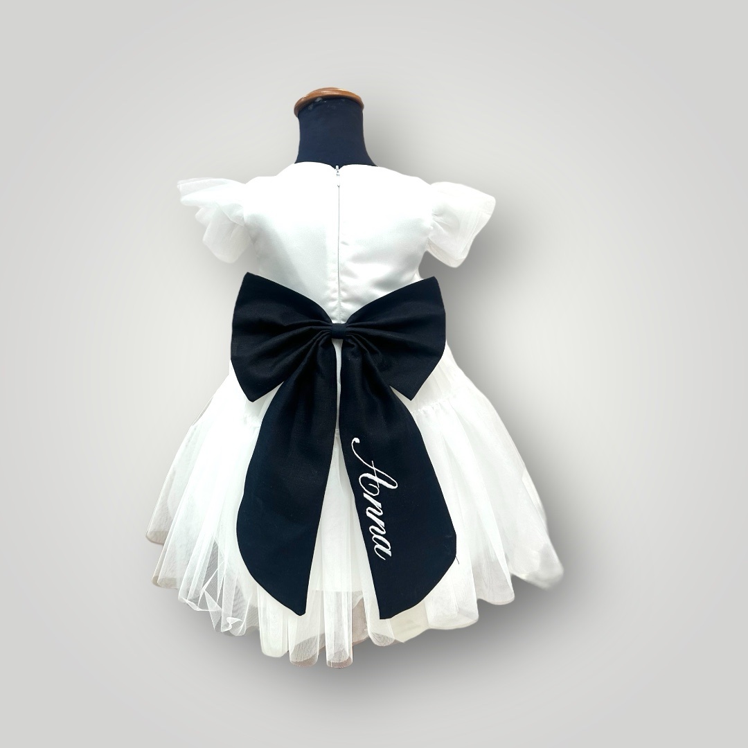 Abito pearl con fiocco in lino blu