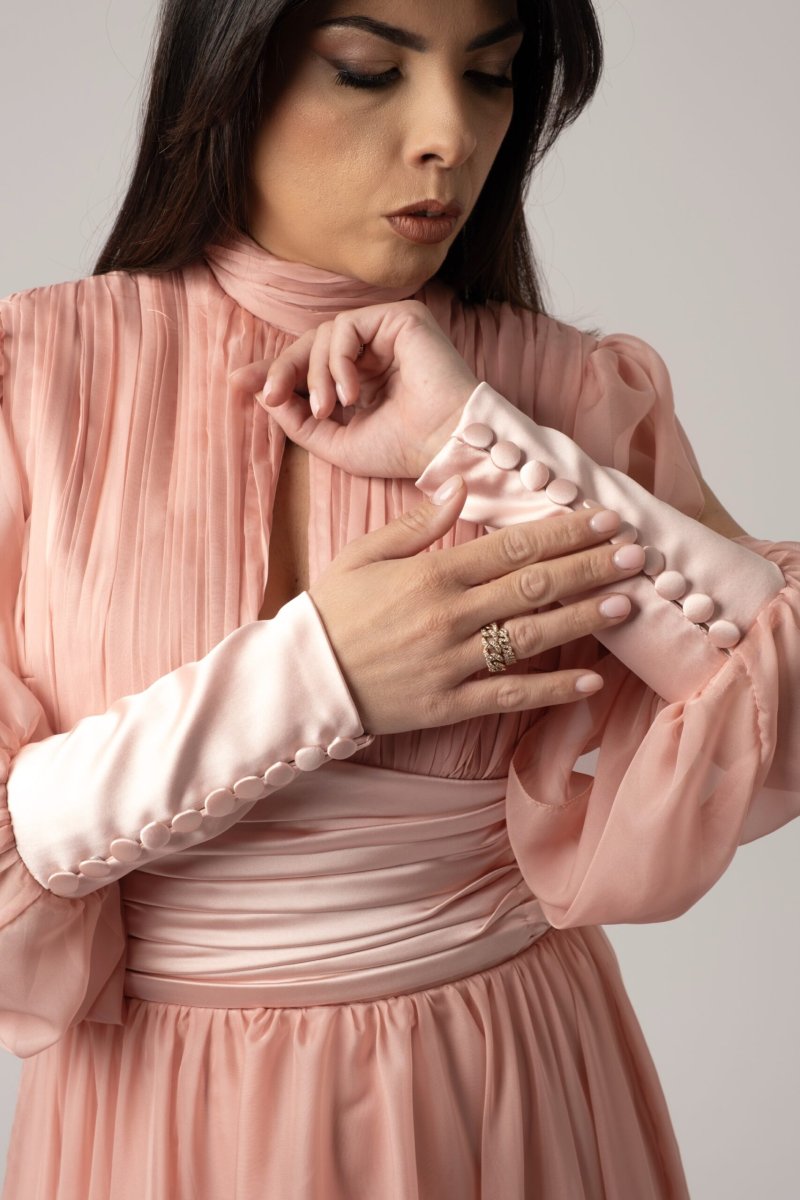 Abito Sartoriale in Chiffon Plissettato e Seta Delicata