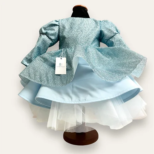 La tua piccola sarà una principessa con questo abito in tessuto super luminoso, rivestito in tinta, in tessuto di cotone con tulle sotto e manica a sbuffo.