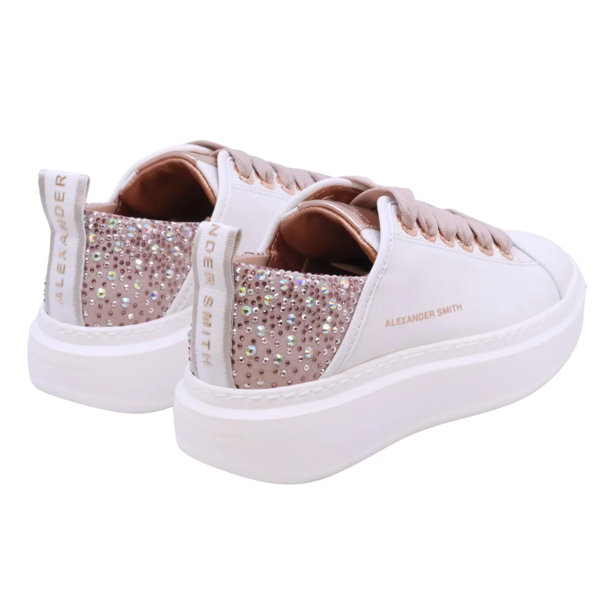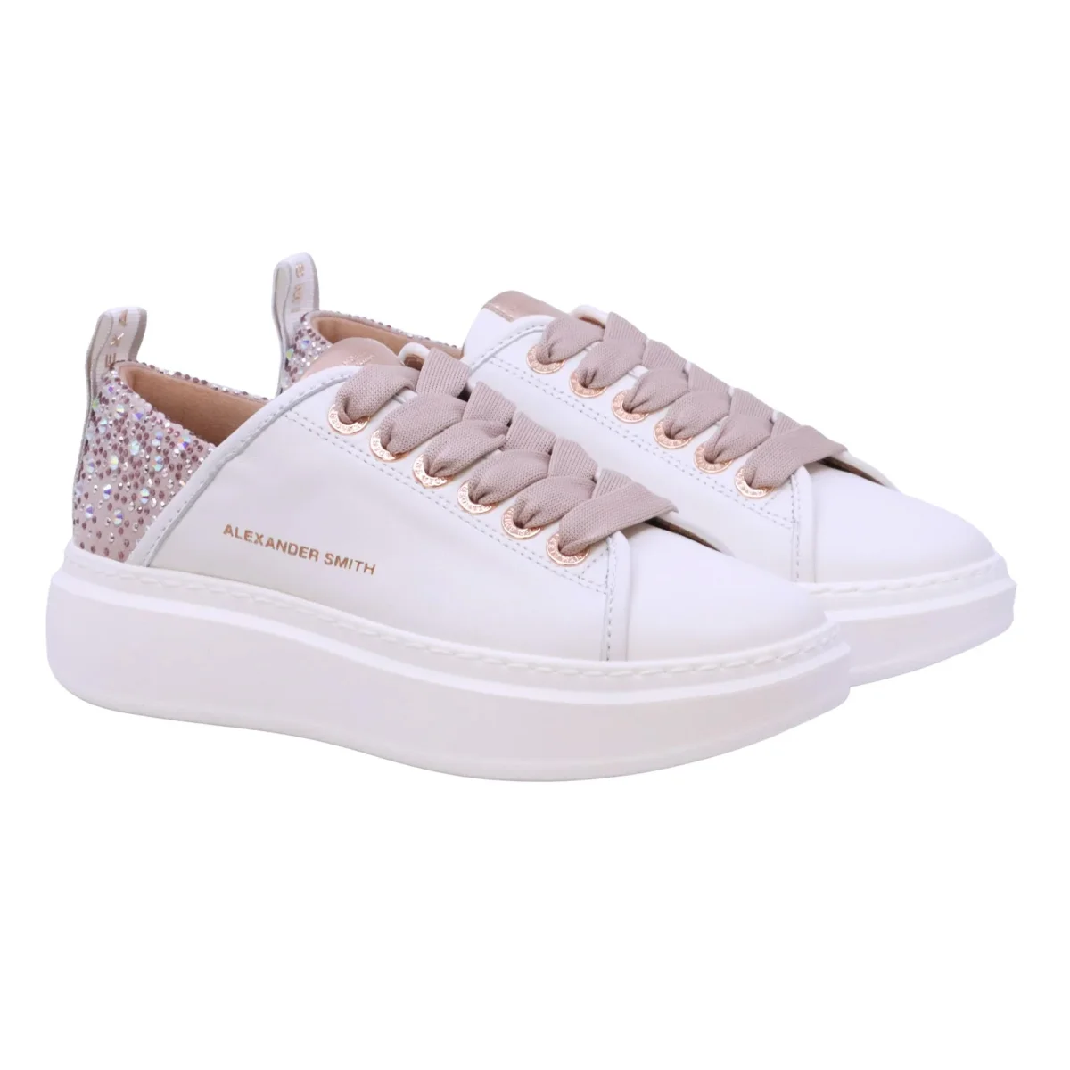 Alexander Smith Wembley 0506 sneaker donna pelle bianca tallone iridescente nude con strass