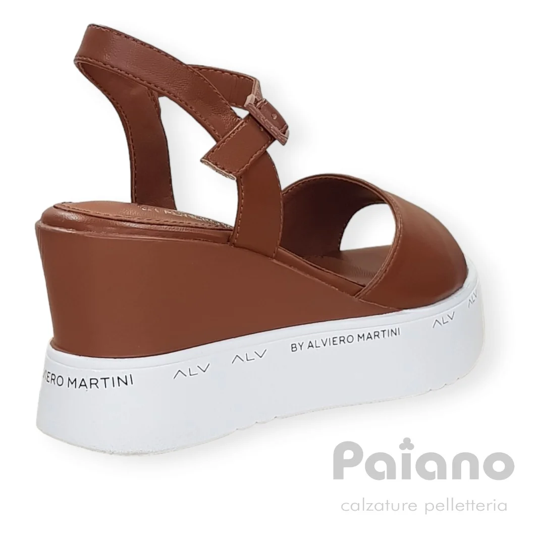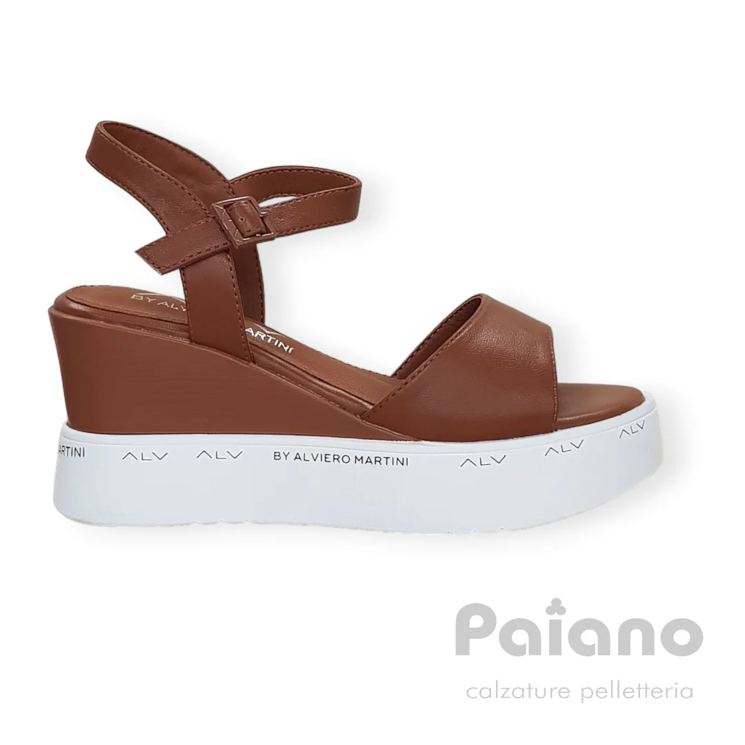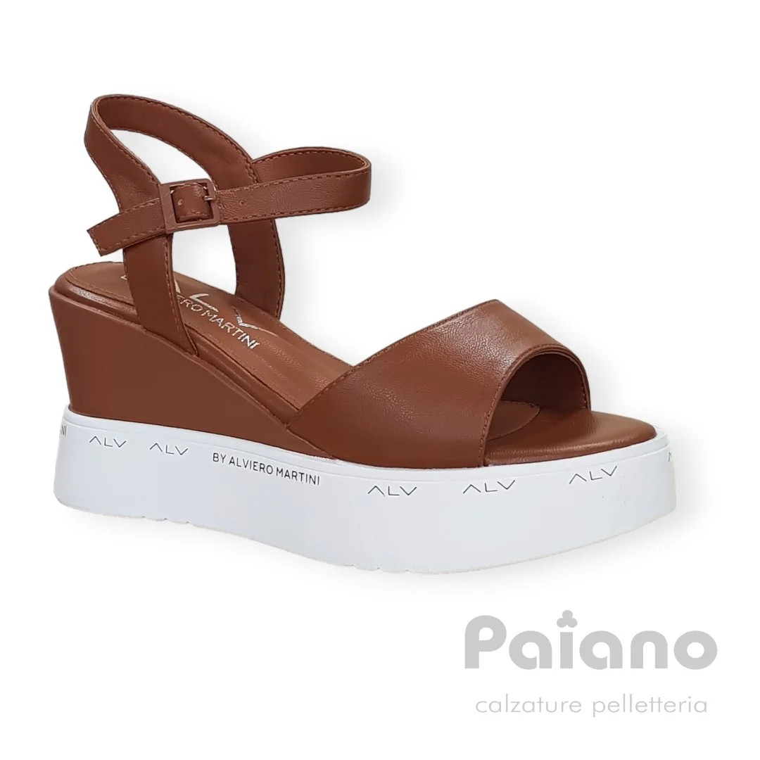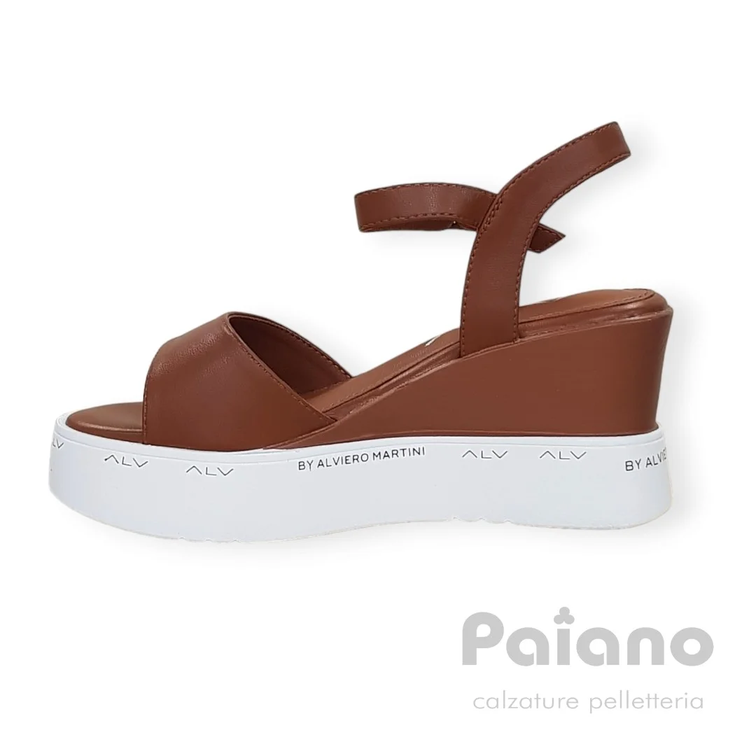 Alviero Martini 094 pelle cuoio sandalo zeppa alta