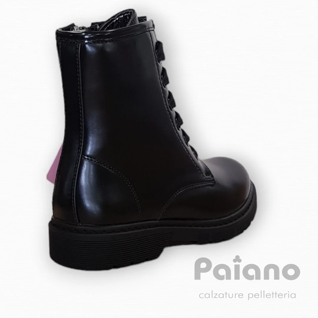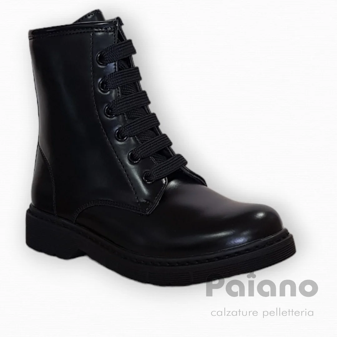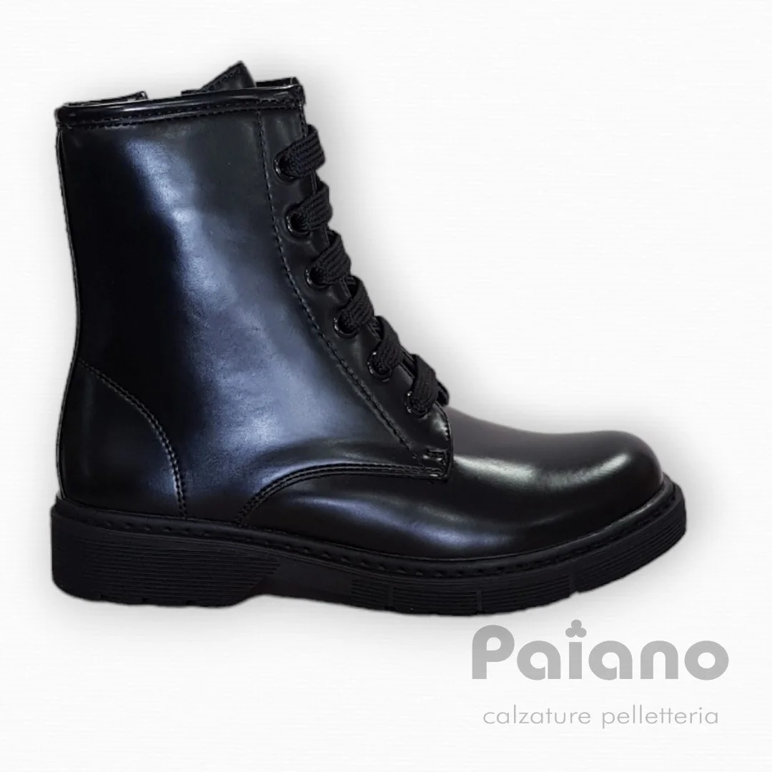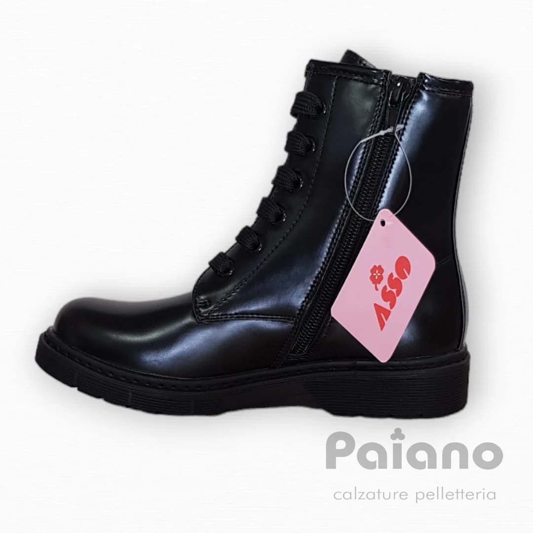 Anfibio Asso 13846 nero pelle allacciato con cerniera