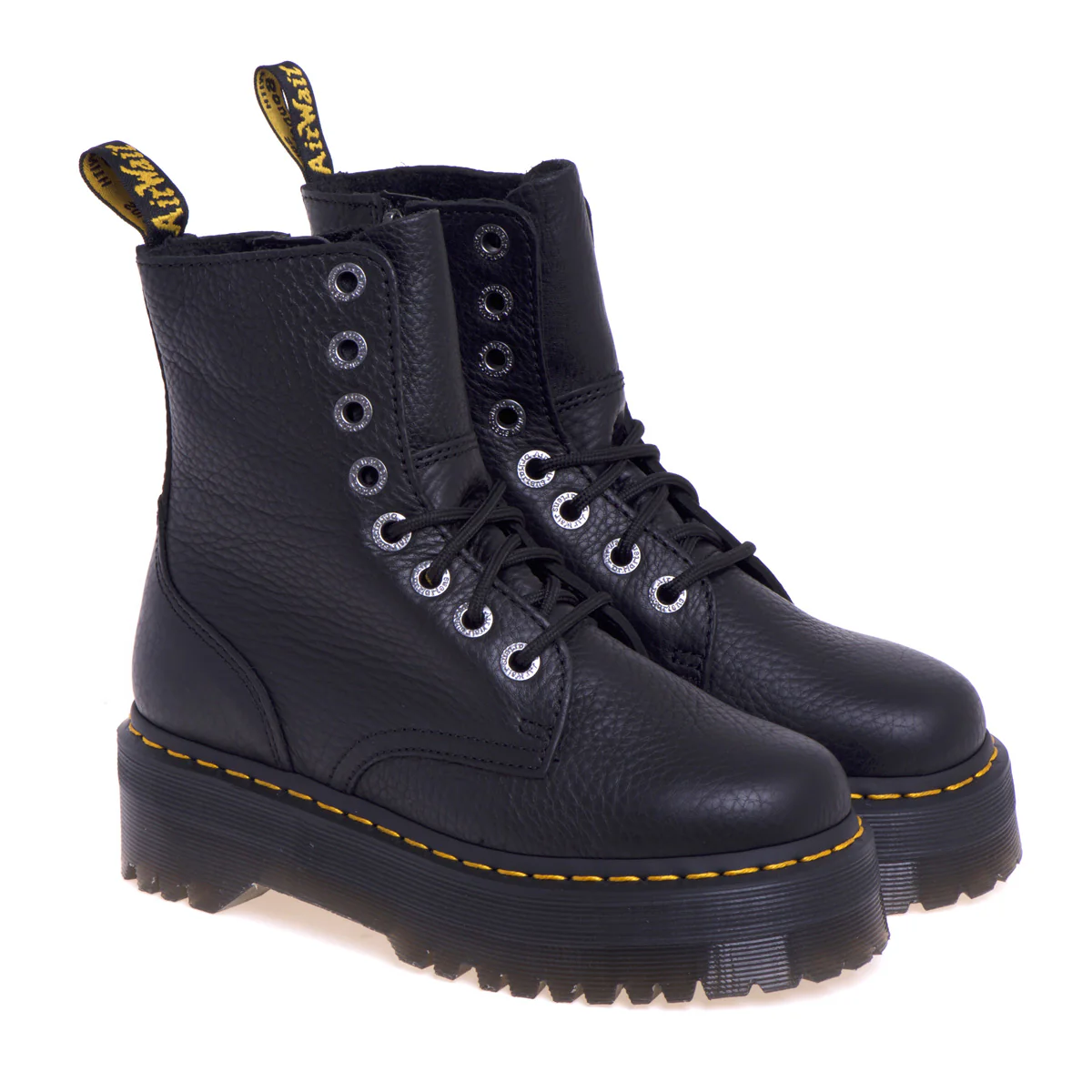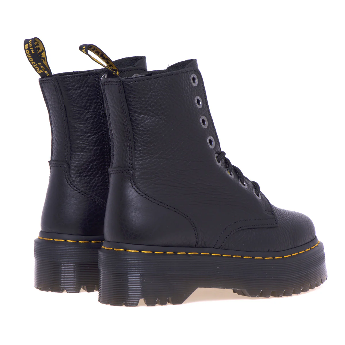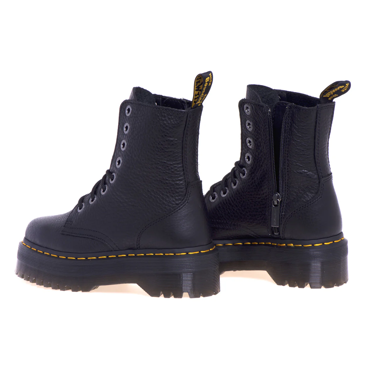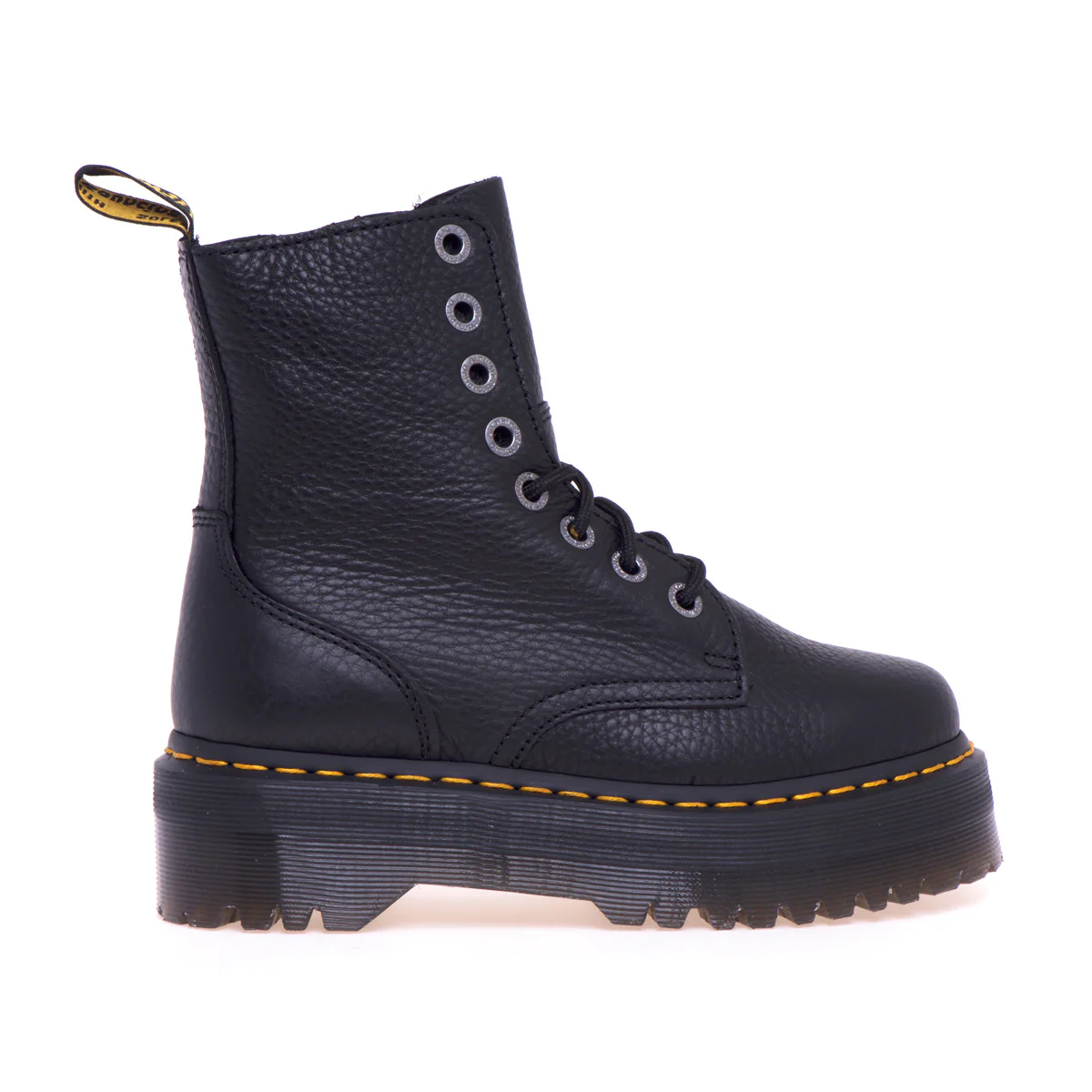 Le iconiche cuciture gialle e la fettuccia posteriore nera e gialla rimangono fedeli al heritage Dr. Martens, integrando disegno e riconoscibilità con stile.