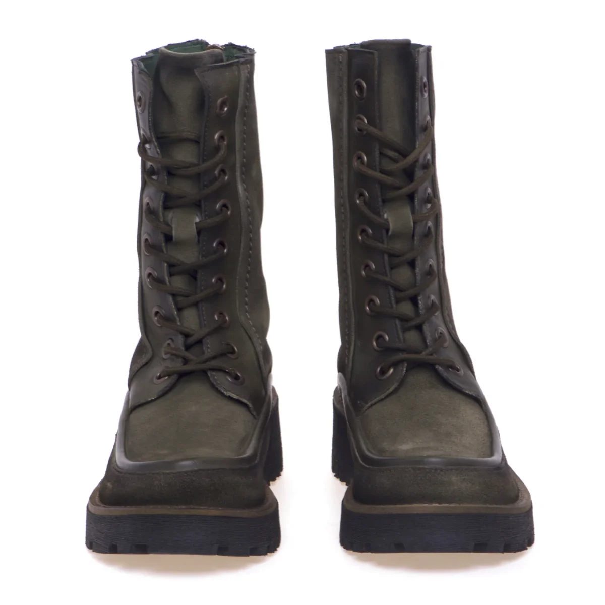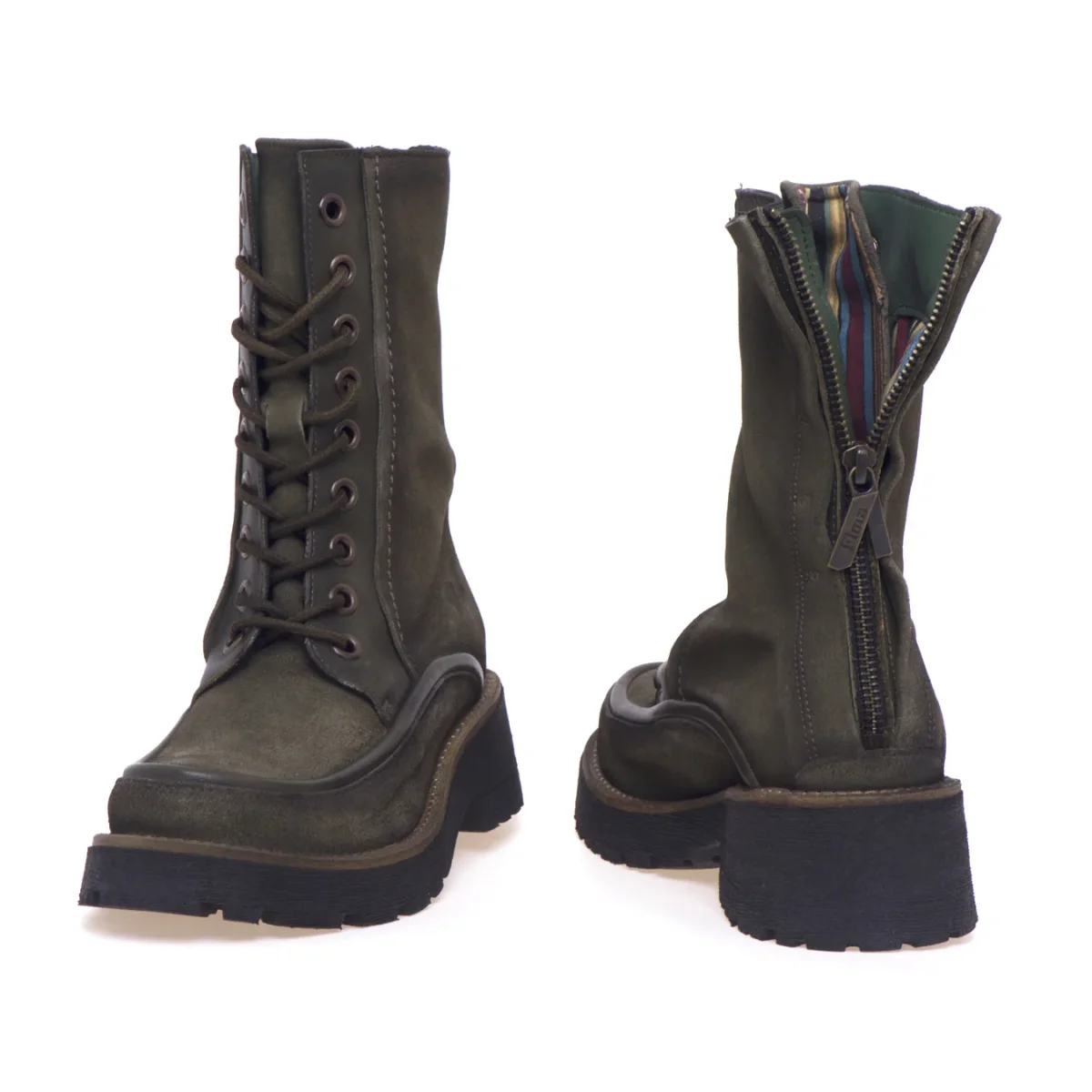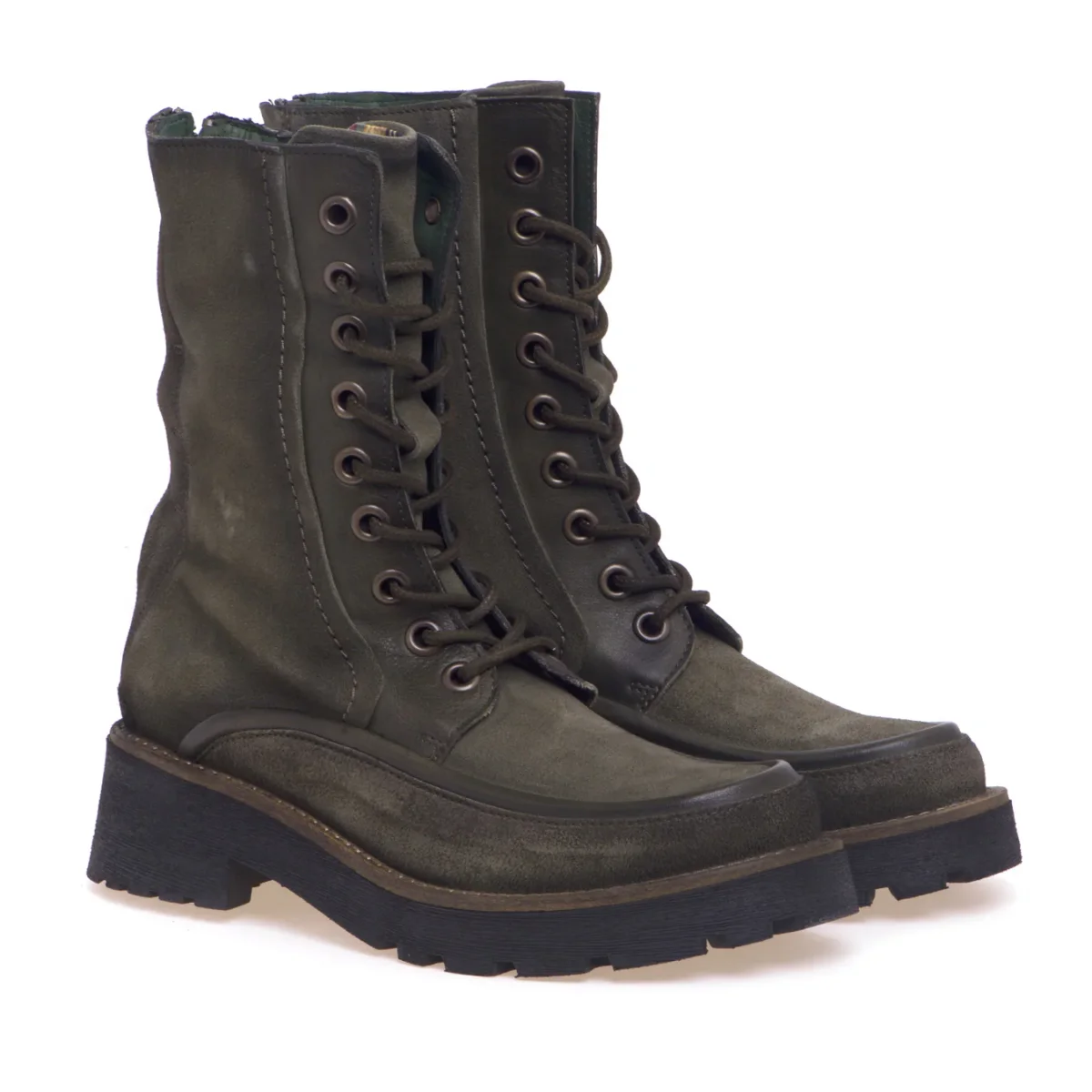 Anfibio Felmini in camoscio con gambale alto e cucitura stile norvegese.