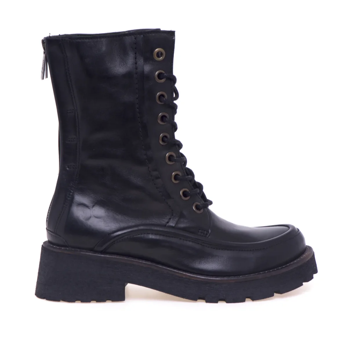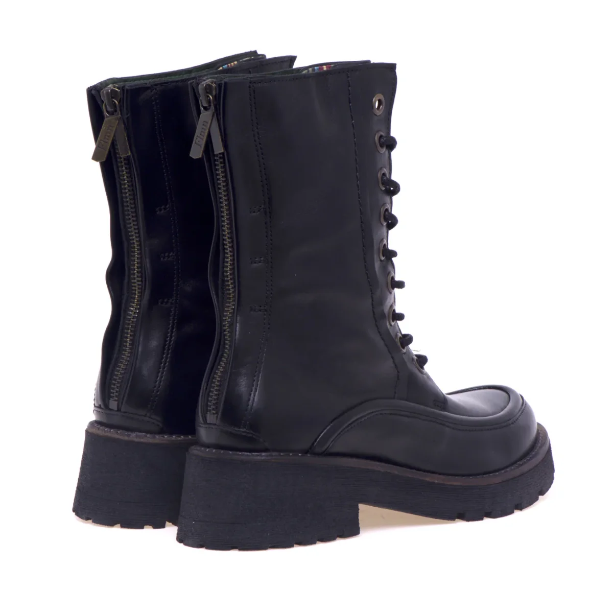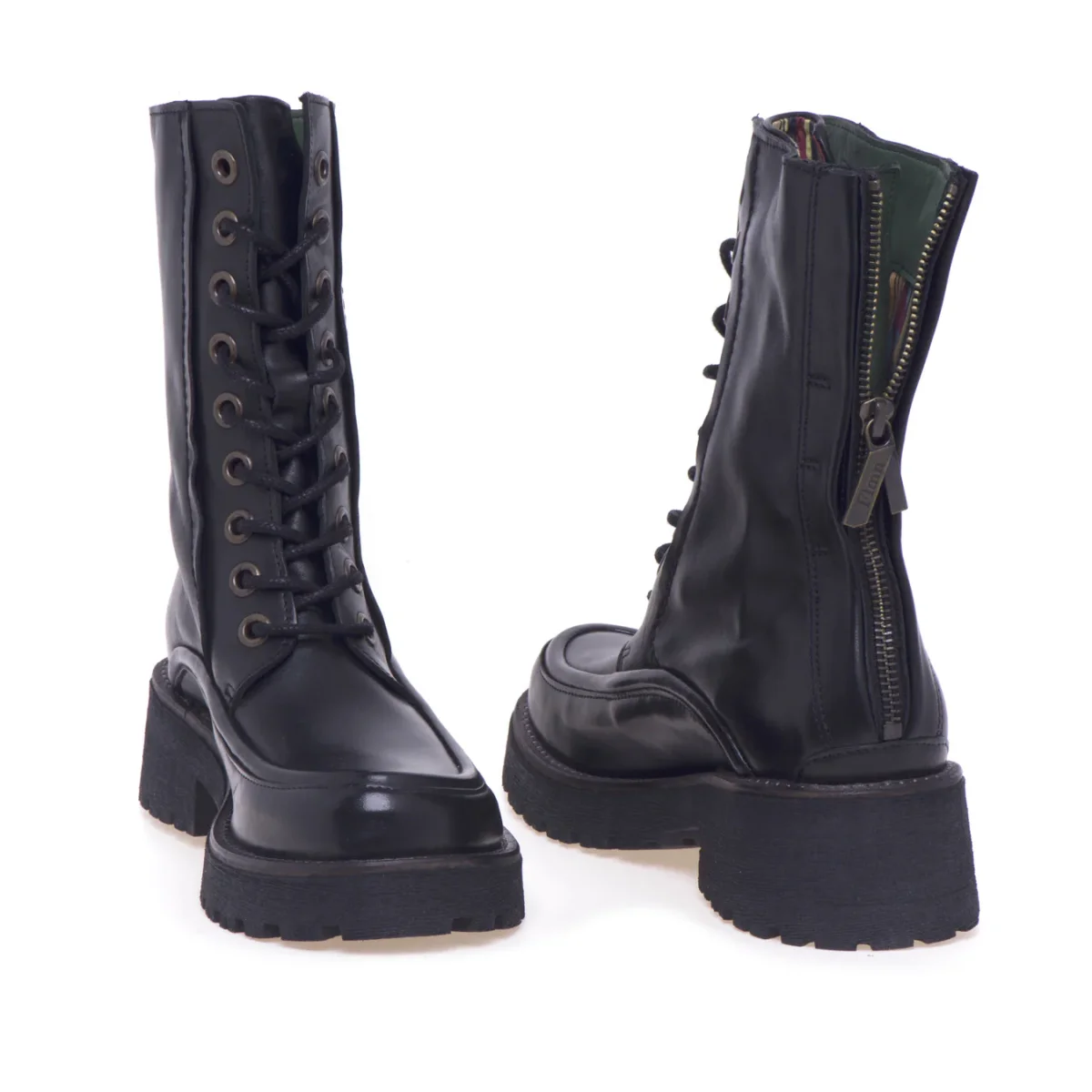 Anfibio Felmini in pelle con gambale alto e cucitura stile norvegese. # Chiusura con zip nel tallone. # Fodera in pelle e tessuto. # Suola in gomma con battistrada a carrarmato.