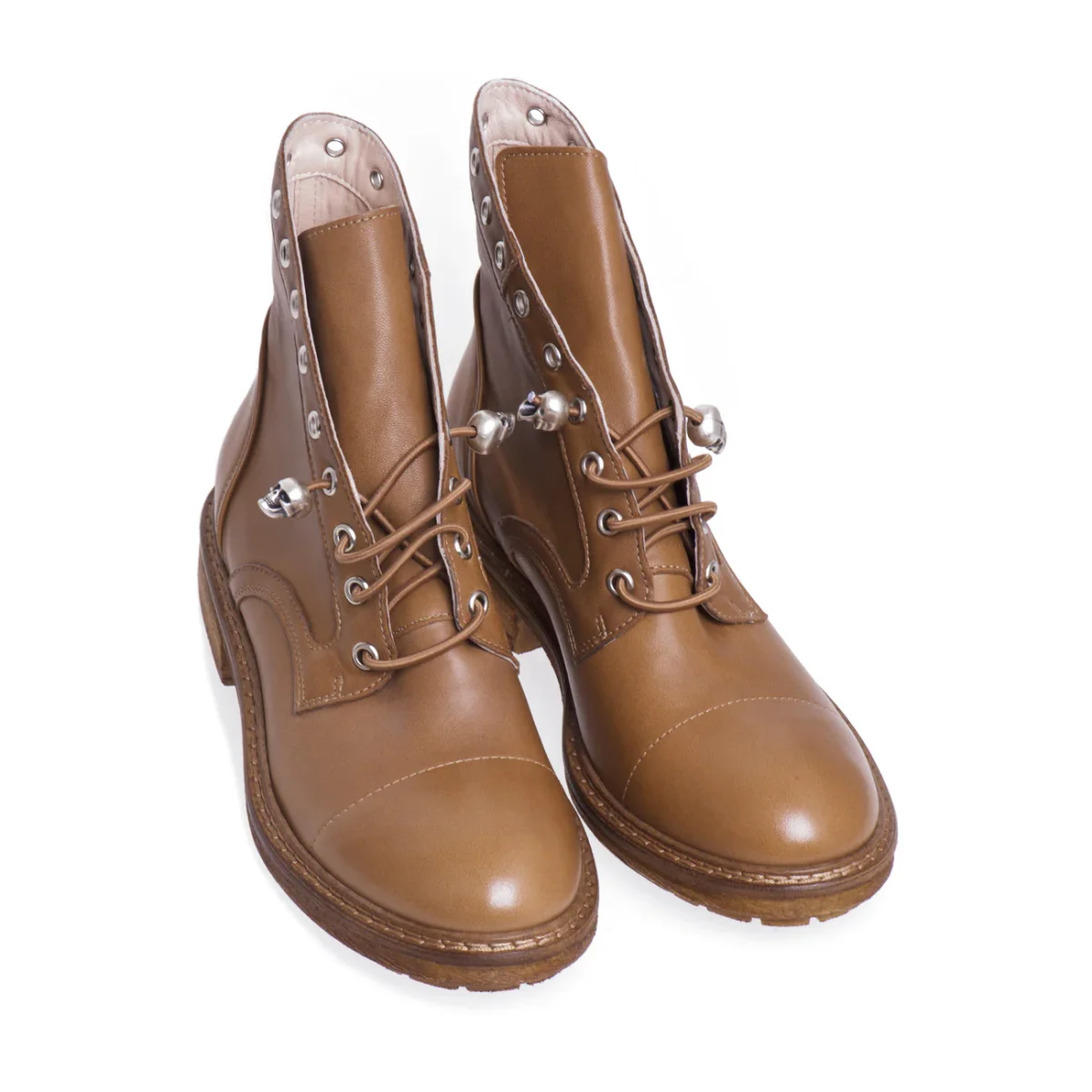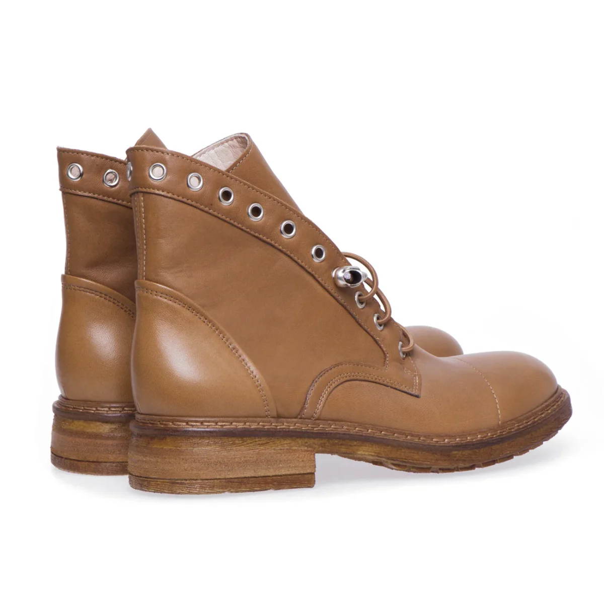 Ottimo per la mezza stagione, anfibio Fru.it in morbida pelle cuoio con scollo svasato e laccio elasticizzato.