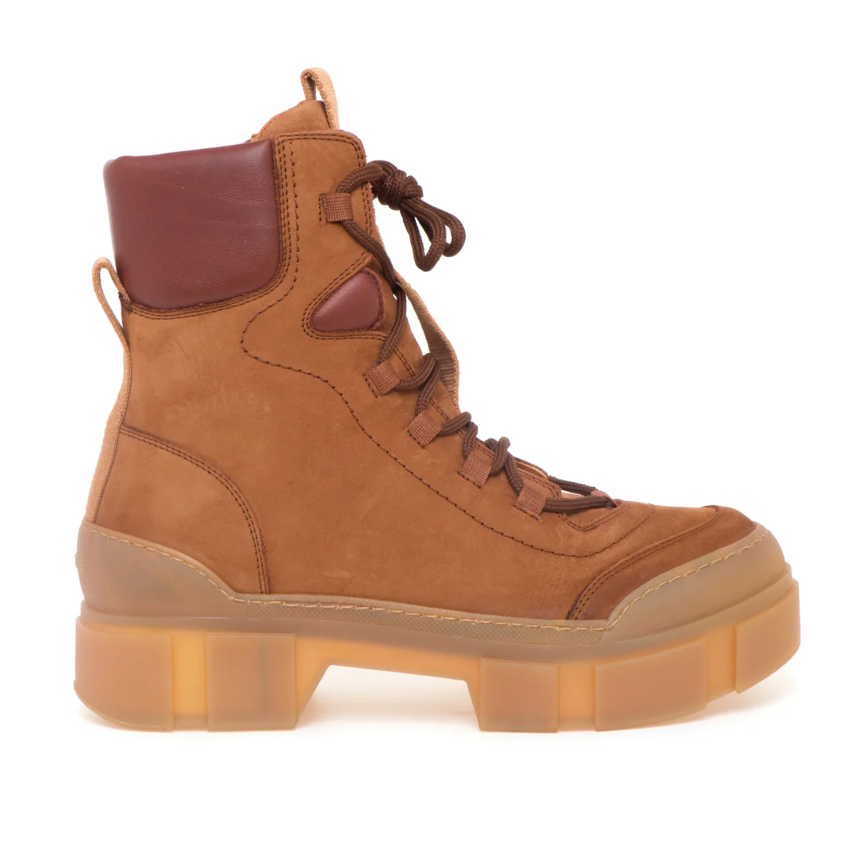 # Suola in gomma color caramello: leggera, flessibile, isolante.