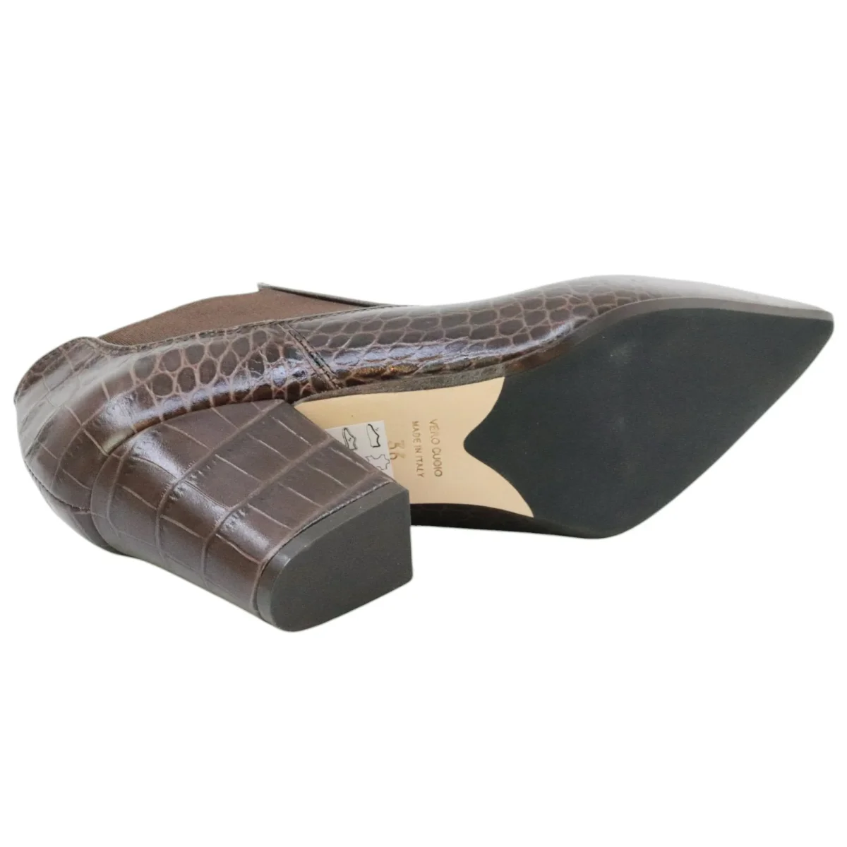 Anna F 1898 tronchetto donna in pelle cocco marrone con elastici laterali. Plantare imbottito sulla pianta. Il tacco largo è alto 8 cm e la suola in cuoio e gomma. Modello 1989 Cocco T Moro