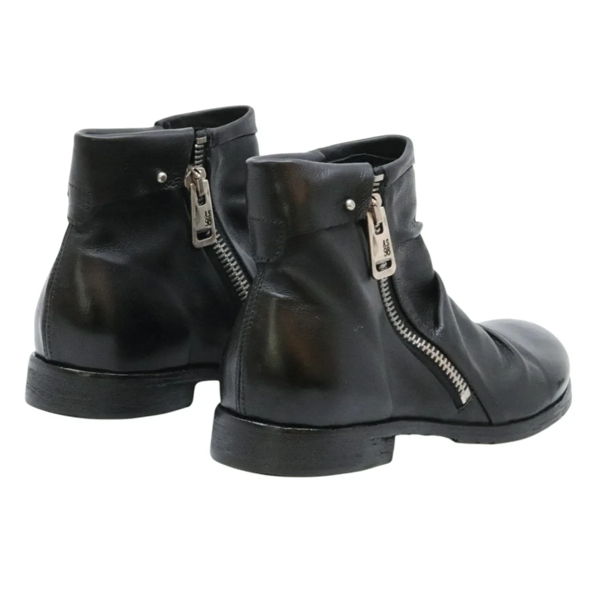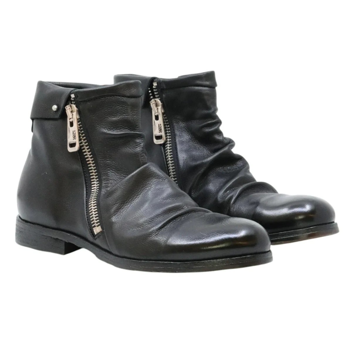 AS98 401216 Clash stivaletto donna in pelle nera. Dallo spirito rock e contemporaneo, lo stivaletto Clash 401216 di A.S.98 è realizzato in pelle nera di alta qualità con dettagli grafici e finitura artigianale. Il design comprende fodera interna in pelle, chiusura a lacci e inserto elastico laterale (o fibbie, a seconda della variante) che ne facilita la calzata e aggiunge carattere. La suola in gomma antiscivolo e la costruzione robusta rendono questo modello perfetto per uno stile urbano deciso, capace di abbinarsi tanto a pantaloni aderenti quanto a gonne midi per un look grintoso. Interamente made in Italy. Modello 401216 Clash Nero