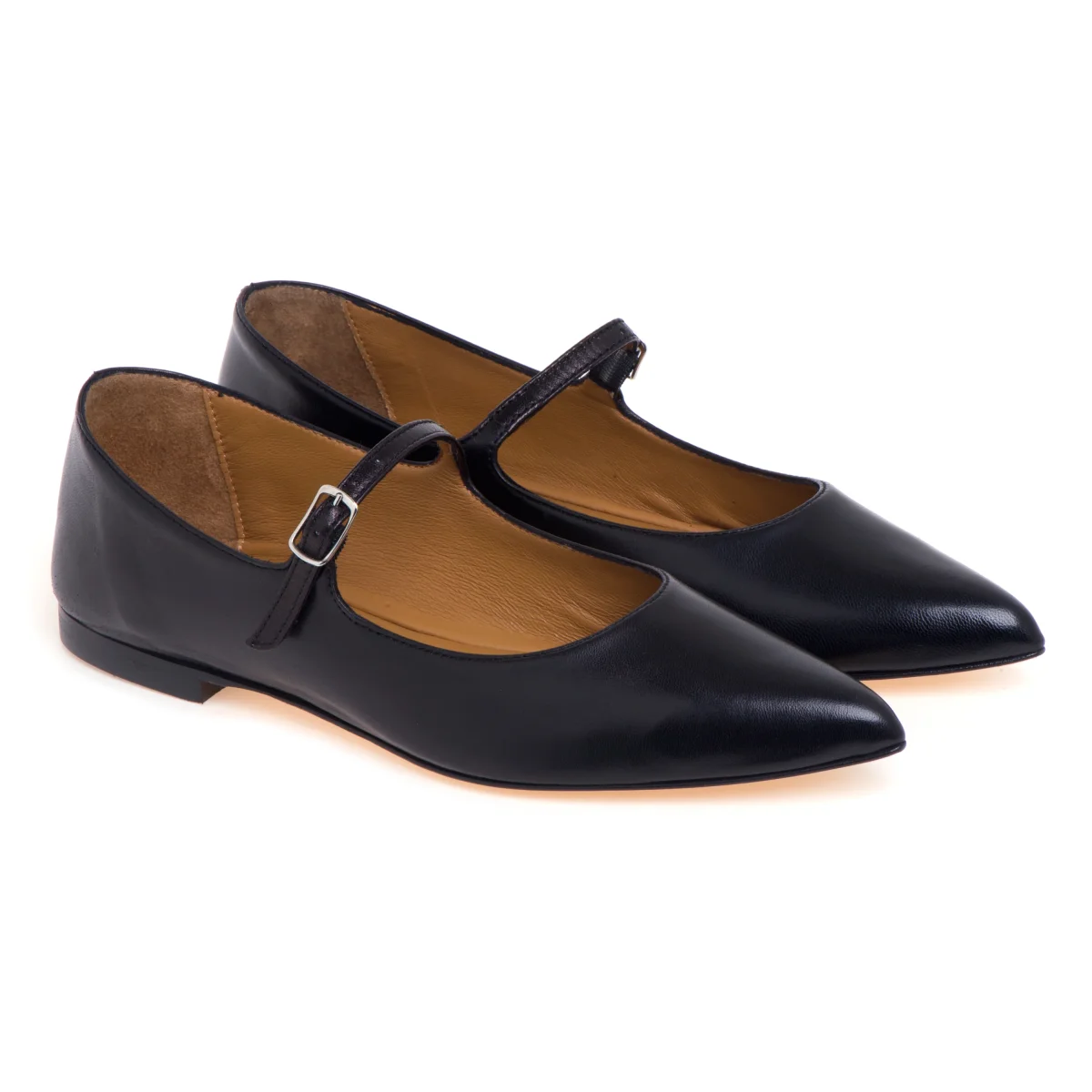 Ballerina Anna F. in nappa con cinturino sul collo del piede