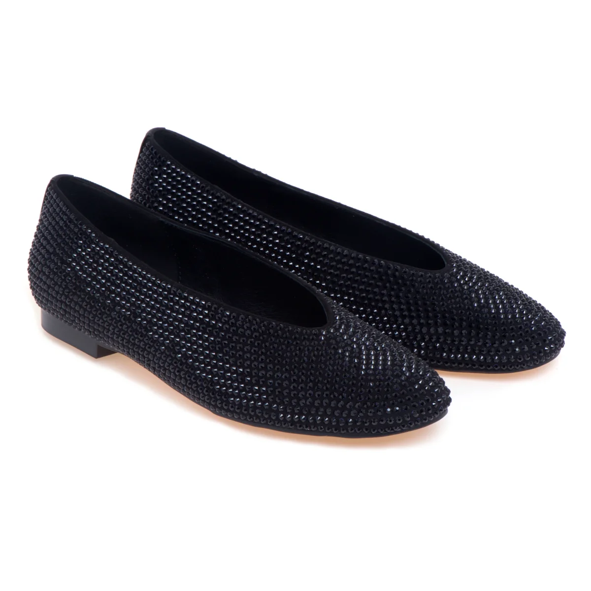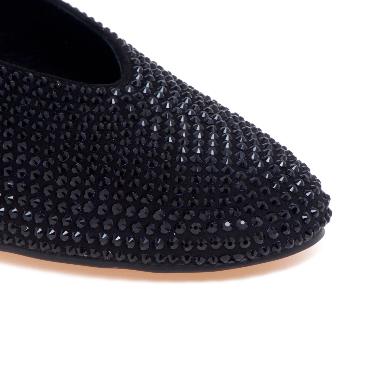 La ballerina Bibi Lou in tessuto effetto suede è un modello che esprime eleganza e raffinatezza. La tomaia, arricchita con strass tono su tono, dona luminosità al design, mentre lo scollo a “V” conferisce un tocco distintivo e femminile.