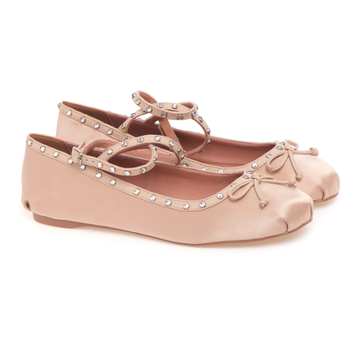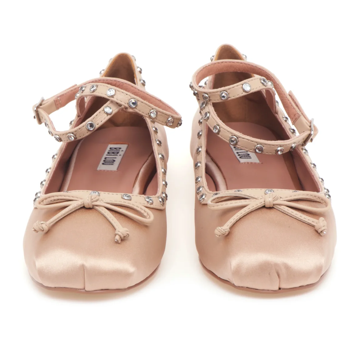 Ballerina Bibi Lou in tessuto satin con cinturino e borchie con strass