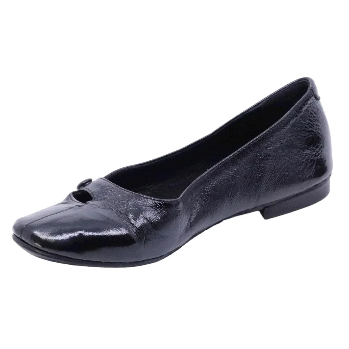 Ballerina donna Kudetà 414500 in pelle nera in vernice. Il pellame viene lavorato in modo artigianale che consente alla calzatura la massima flessibilità e comodità, oltre che leggerezza. La suola è in cuoio. Prodotto made in Italy. Modello 414500 147 Vernice Nero