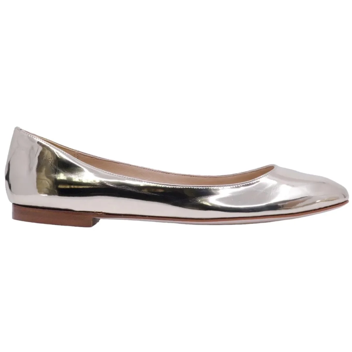 Ballerina Fabio Rusconi S3442 da donna in morbida pelle specchiata di colore platino. Lavorazione a sacchetto, tacco alto 1 cm. La suola è in vero cuoio. Prodotto made in Italy. Modello S-3442 specchio reflejo platino