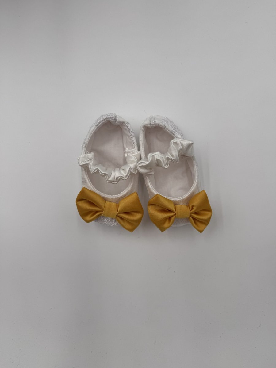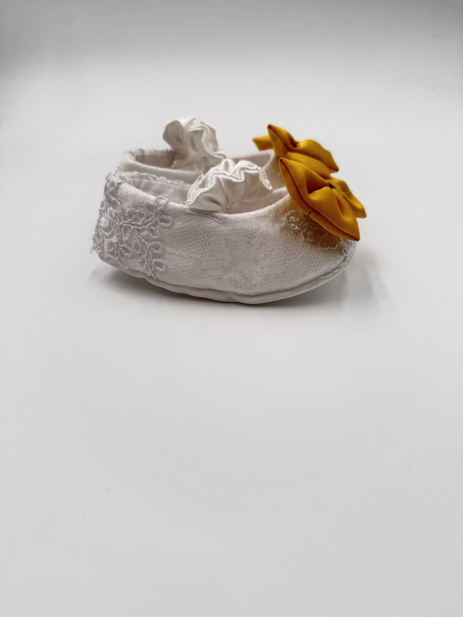 Ballerina in pizzo con fiocco giallo in seta