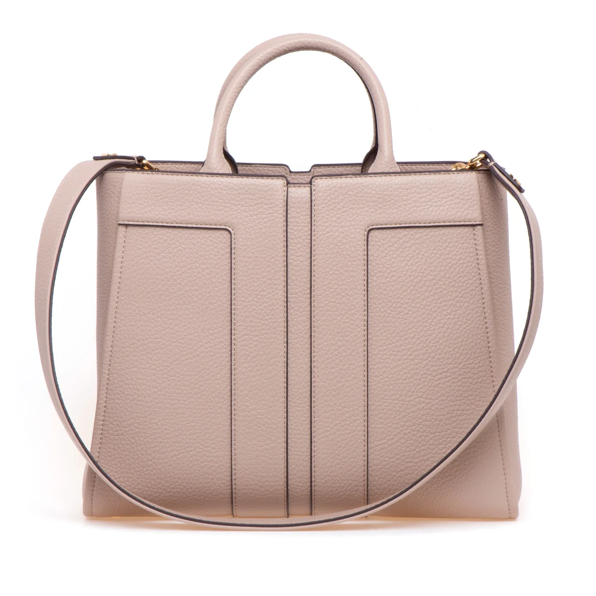 La tote è dotata di un manico per la portata a mano e di una tracolla removibile, permettendo diverse modalità di utilizzo per adattarsi a ogni situazione.