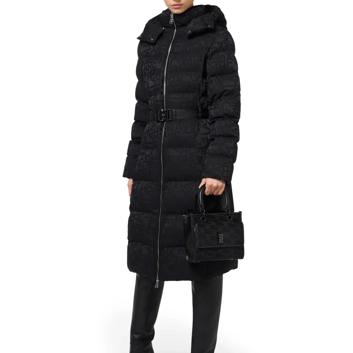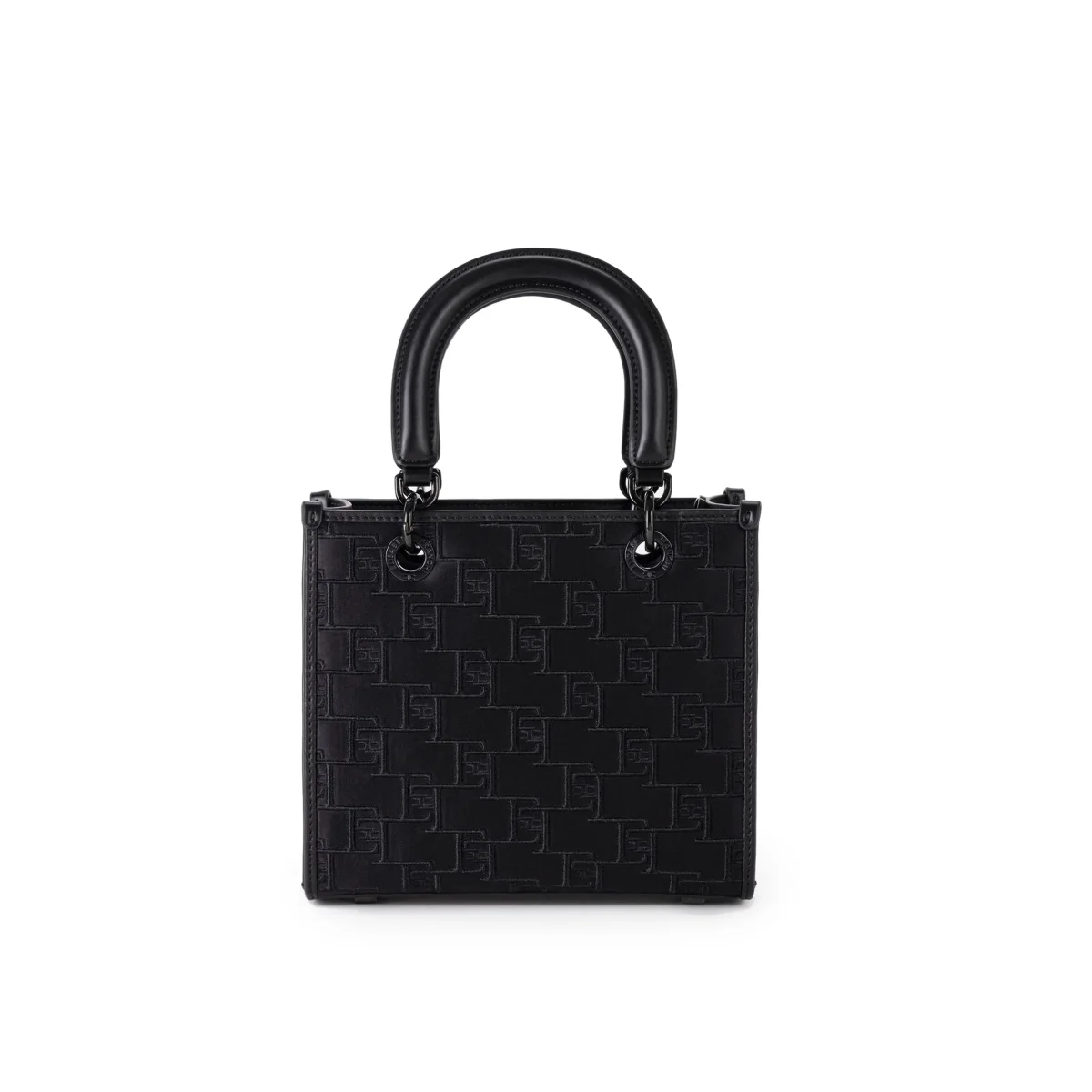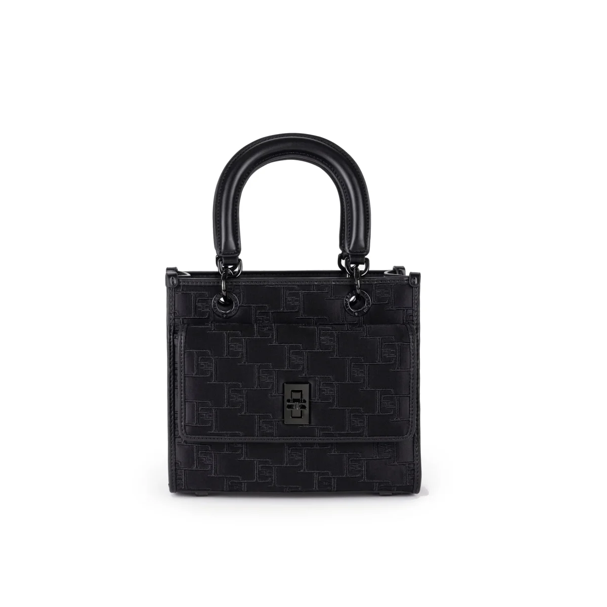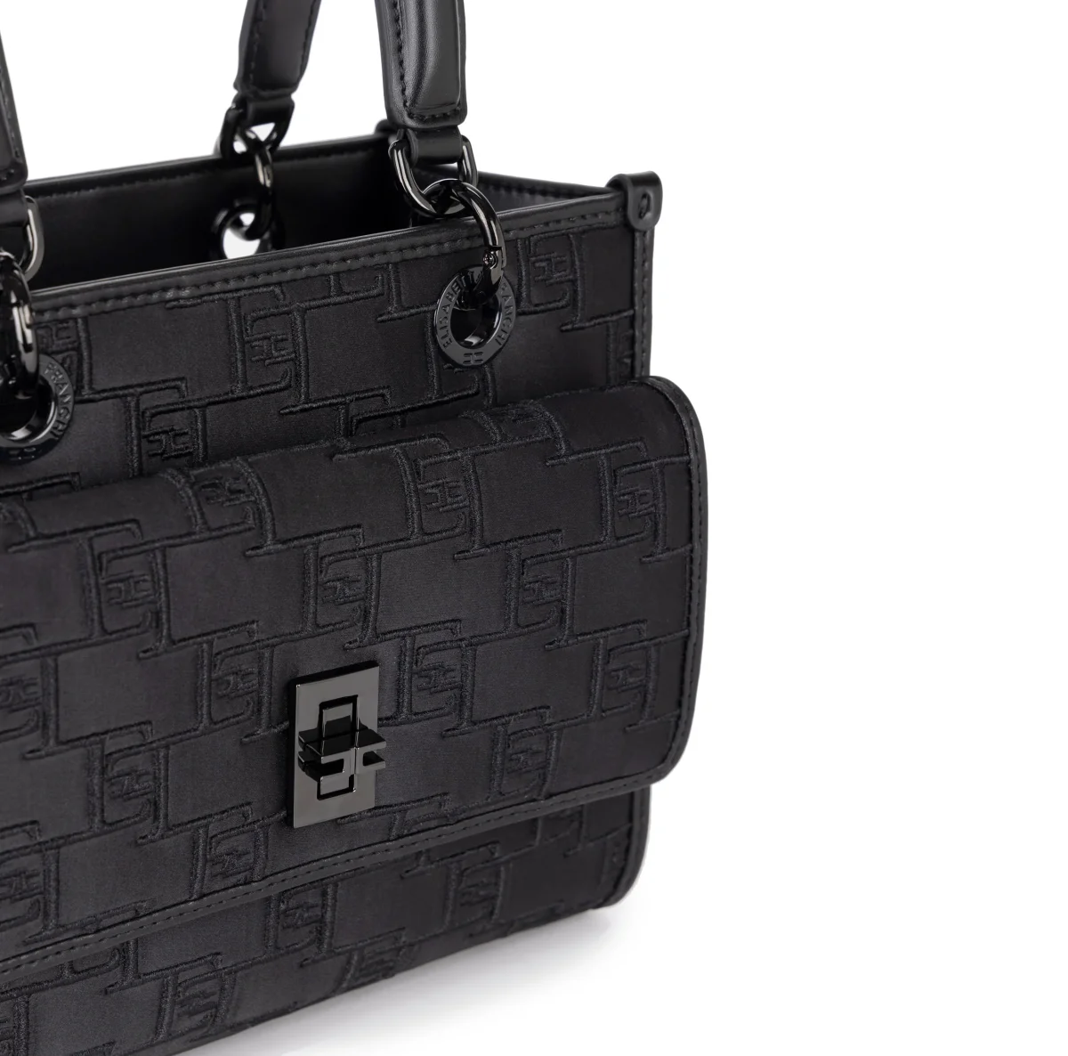 Borsa a mano Elisabetta Franchi in raso con loghi ricamati in rilievo e colore tono su tono per un look ricercato e raffinato.