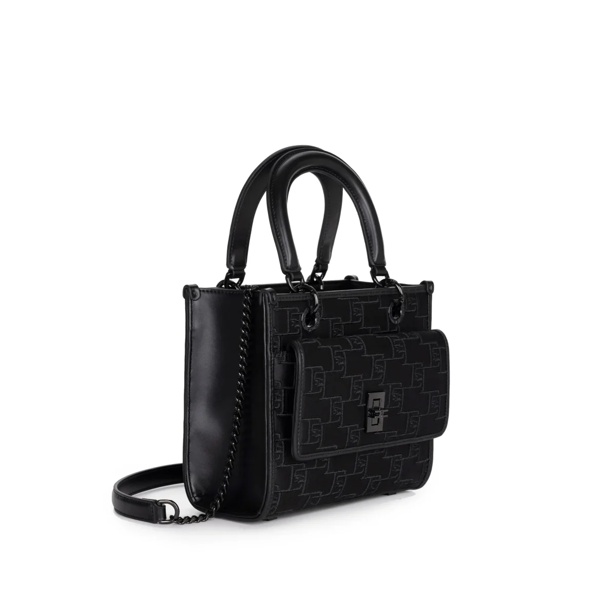 Borsa a mano Elisabetta Franchi in raso con loghi ricamati in rilievo e colore tono su tono per un look ricercato e raffinato.Presenta uno scomparto principale con chiusura magnetica e uno più piccolo a patta con chiusura a girello. Non può mancare la tracolla che può essere applicata o rimossa a seconda delle necessità e […]