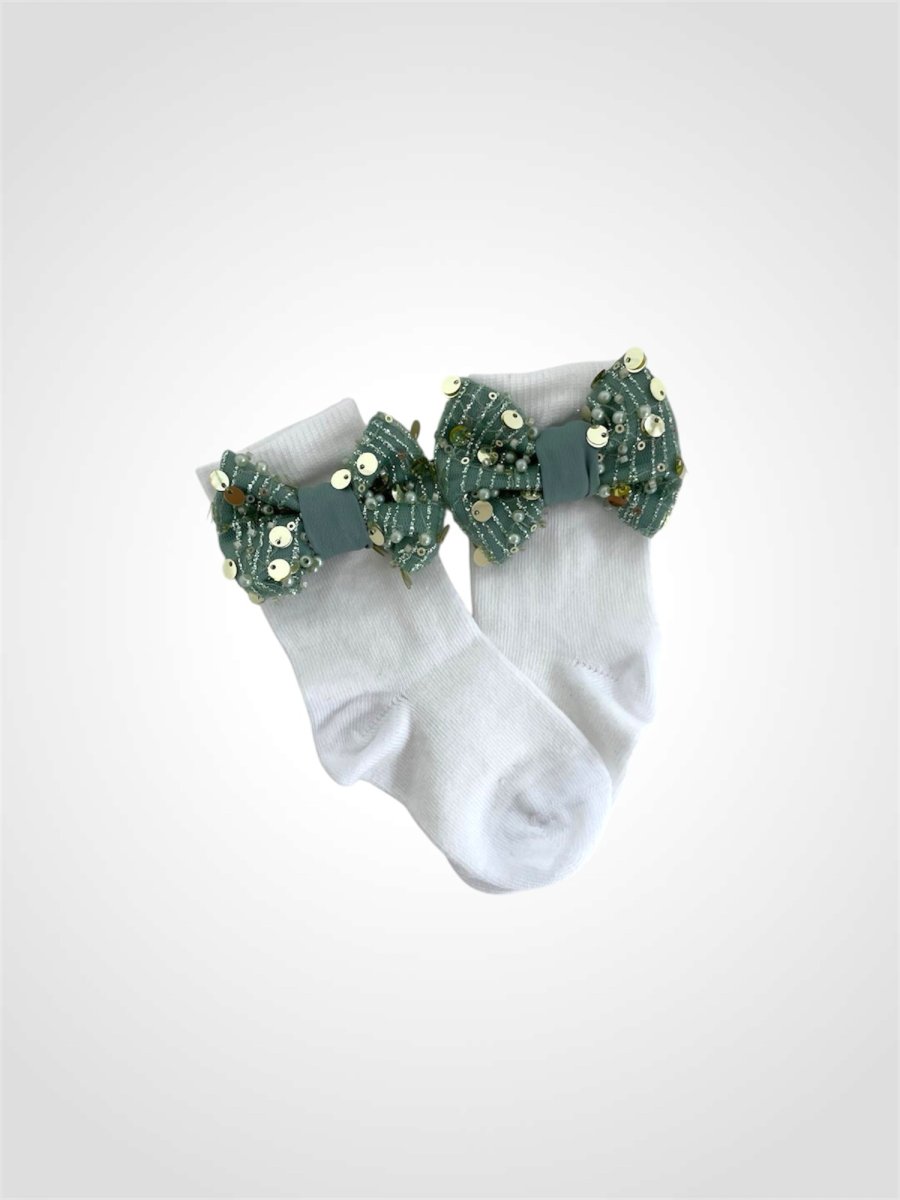 Calzini con fiocco in seta e nodo di perline