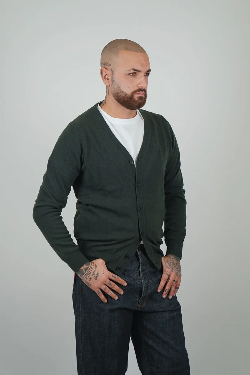 Cardigan in lana e cashmere pensato per offrire calore leggero e morbidezza superiore. La vestibilità regolare e la struttura essenziale lo rendono un capo versatile, ideale da indossare sia aperto che chiuso, mantenendo sempre un’estetica pulita e contemporanea. Un must-have per la stagione, definito da filati pregiati e produzione Made in Italy.