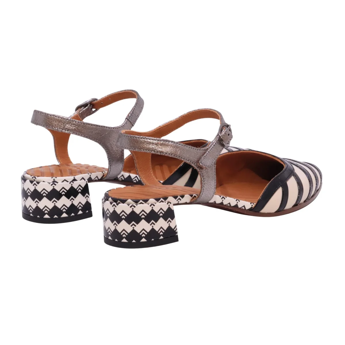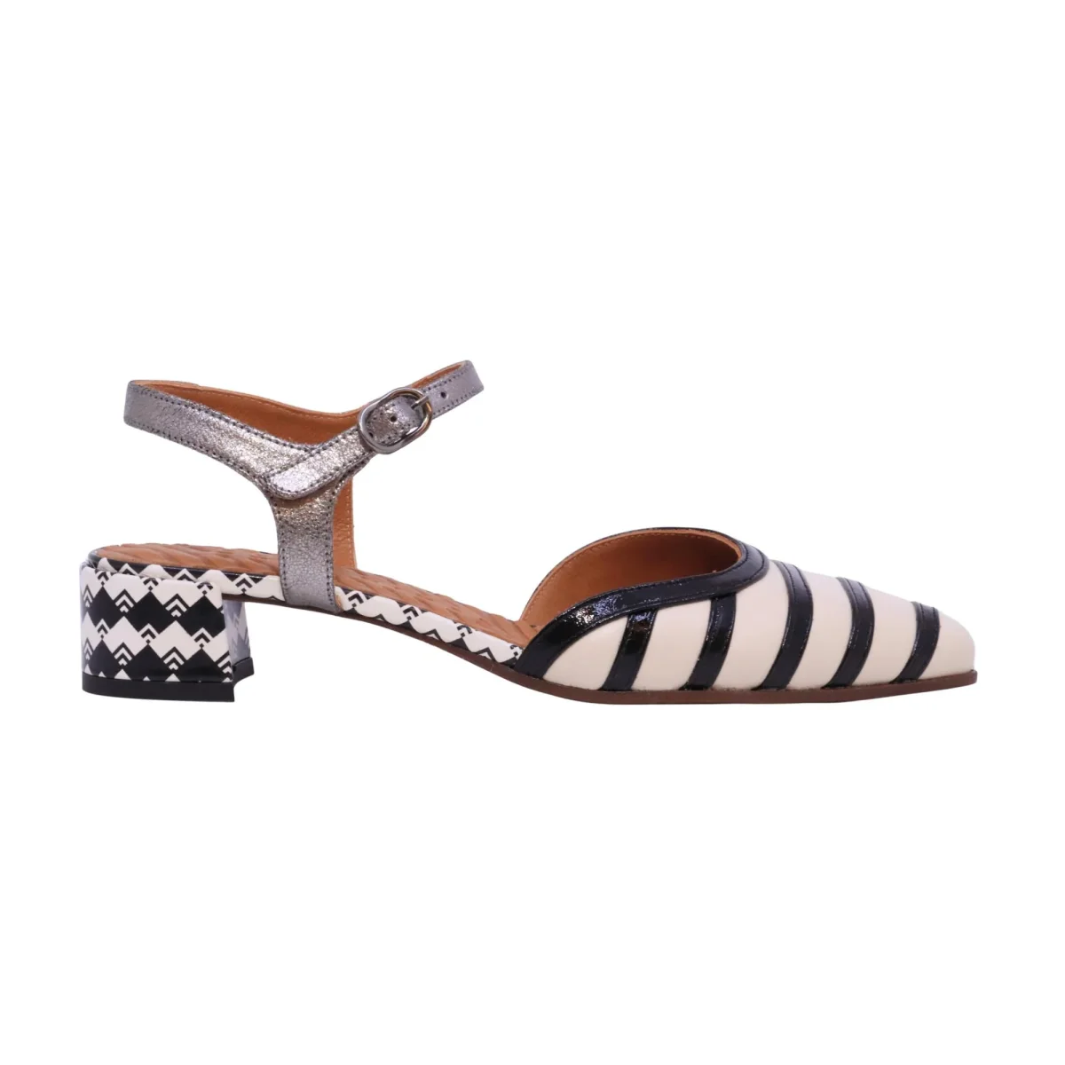 Chie Mihara Haler slingback donna in pelle panna e nero con tacco decorato