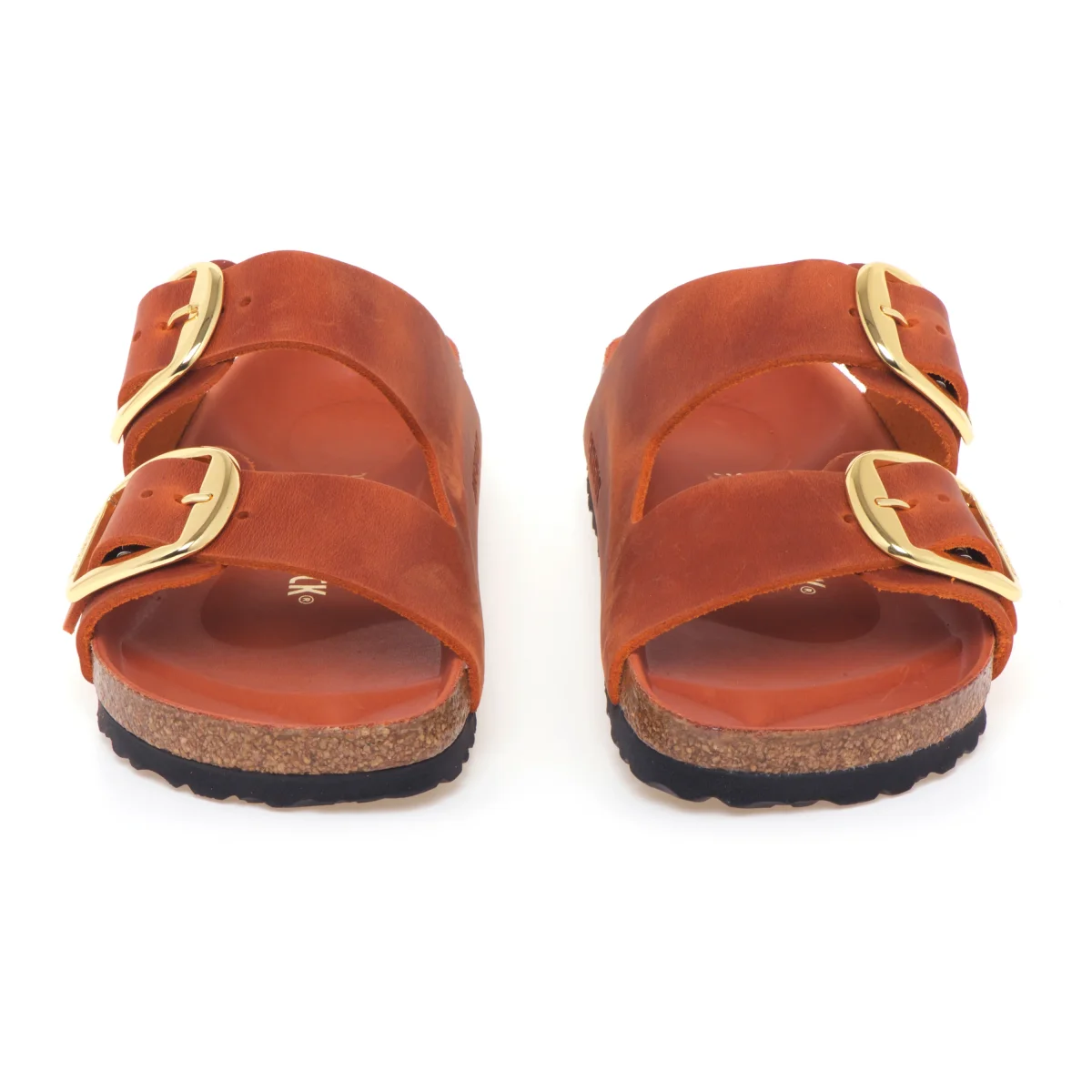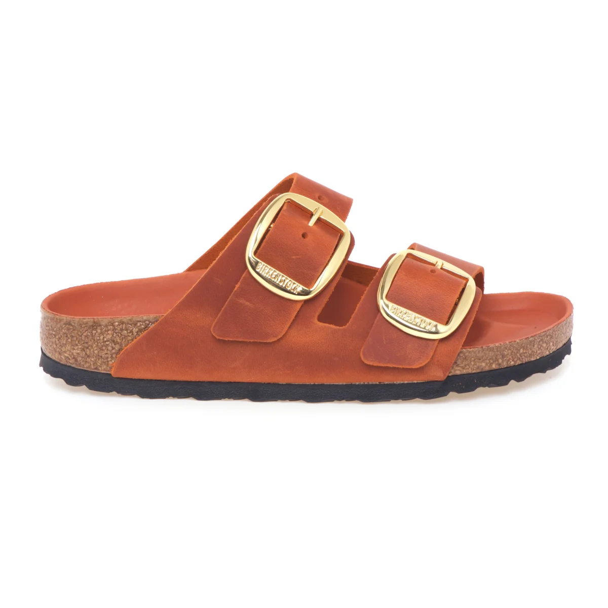 Ciabatta Birkenstock Arizona Big Buckle in pelle oliata con doppia fascia regolabile e sottopiede anatomico in pelle.