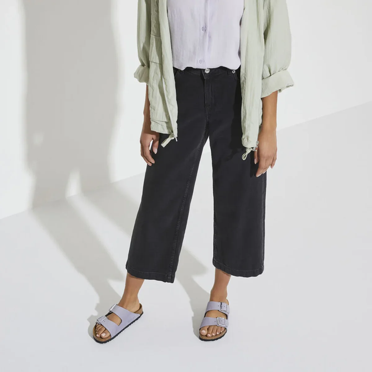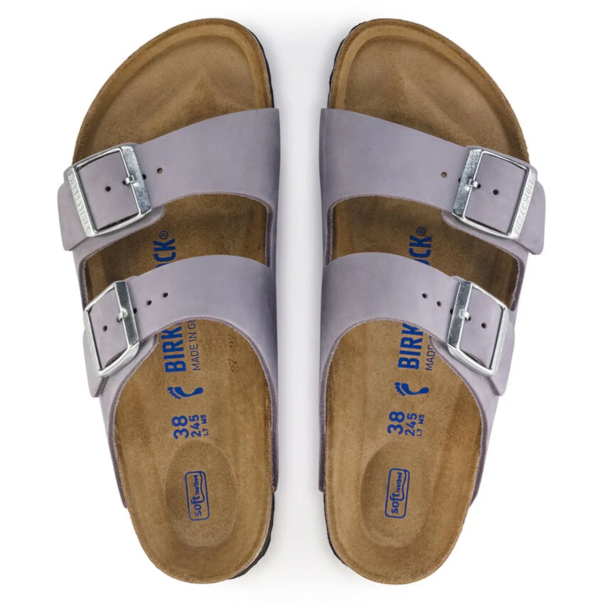 Ciabatta Birkenstock Arizona in pelle con planantare soft.# Fodera in pelle.# Sottopiede anatomico in camosio imbottito.# Suola in gomma.# Narrow fit.# colore: Purple Fog