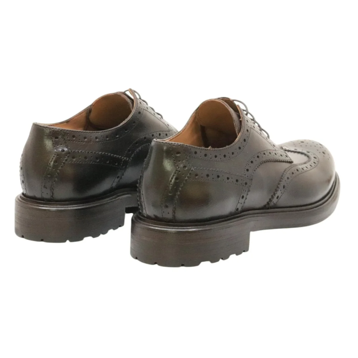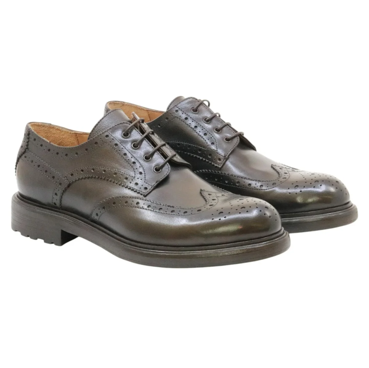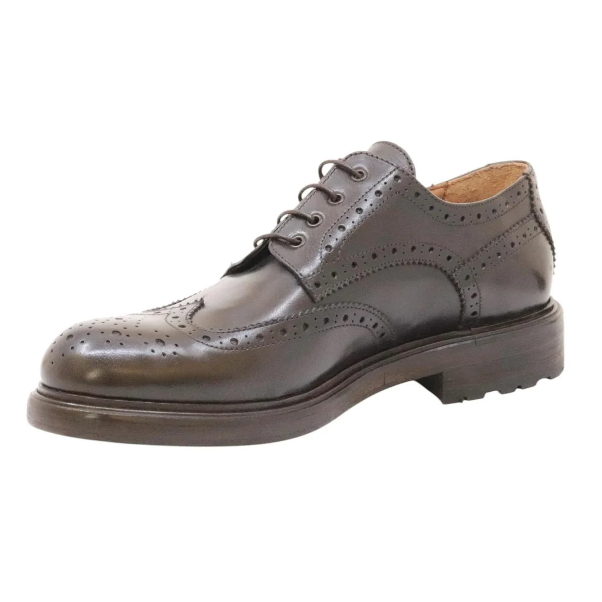 Crispiniano 481 derby uomo pelle marrone. La scarpa Derby perfetta per l’uomo che cerca solidità, eleganza e personalità. Realizzata in pelle di bufalo marrone, con disegno imperiale e suola carrarmato in cuoio, la Crispiniano 481 abbina stile classico e spirito contemporaneo. Perfetta per il lavoro o per un outfit formale che non rinuncia al comfort. Modello 481 Bufalo Teak Marrone