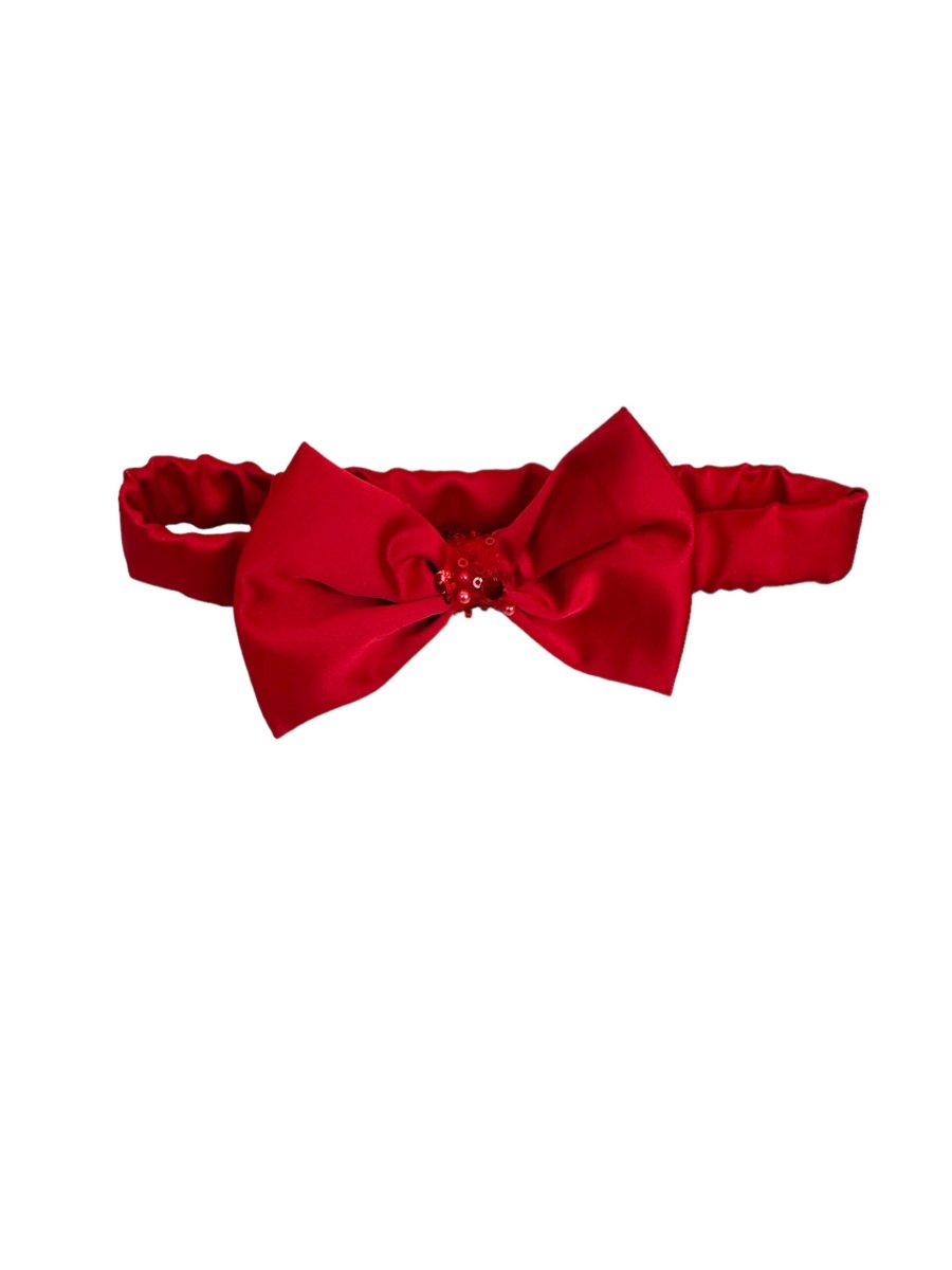 Fascia rossa con fiocco in seta nodo in perline