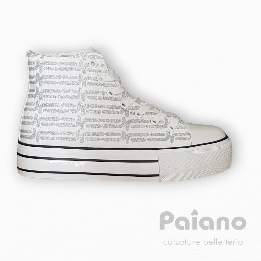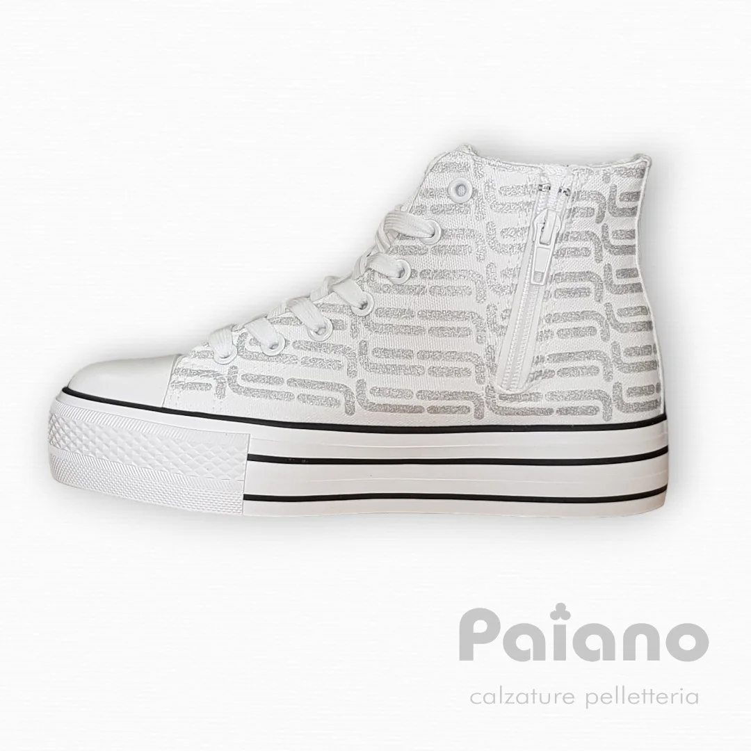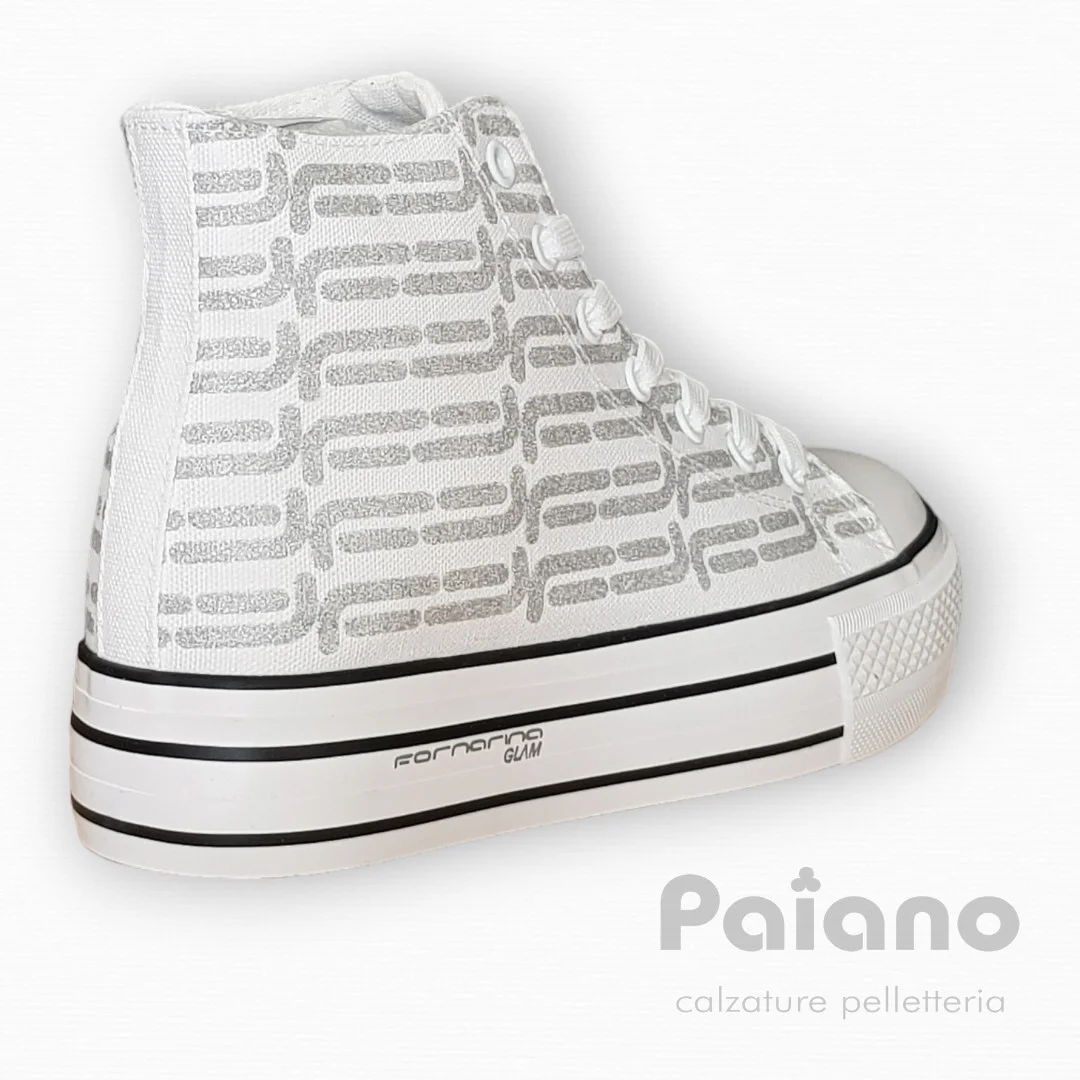 Fornarina barbi 3 tessuto bianco logato argento mod. converse